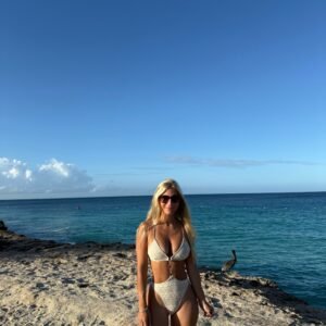 Trikini base Lycra beige + encaje color manteca- con detalle de argollitas de Zamak