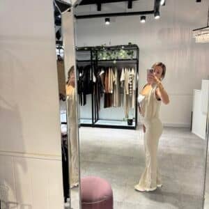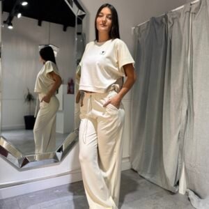Pantalón Jogger gris topo con franja lentejuelas plateadas