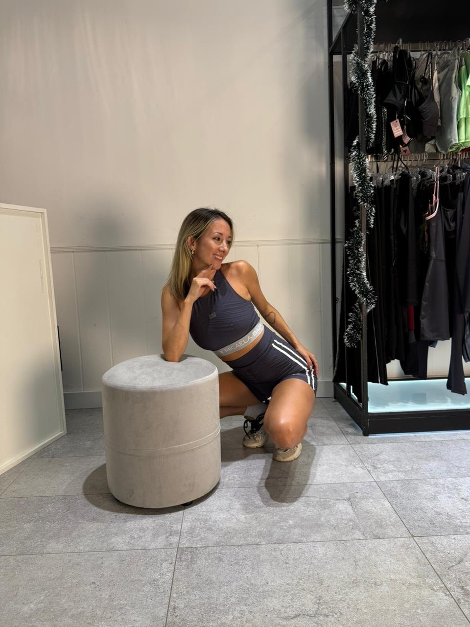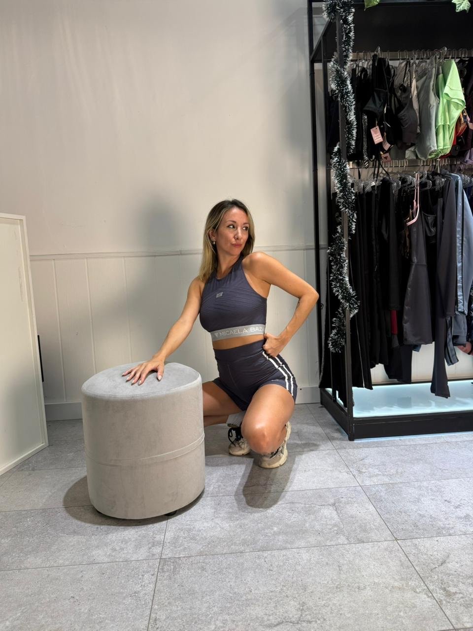 Biker gris texturada con lineas blancas en laterales