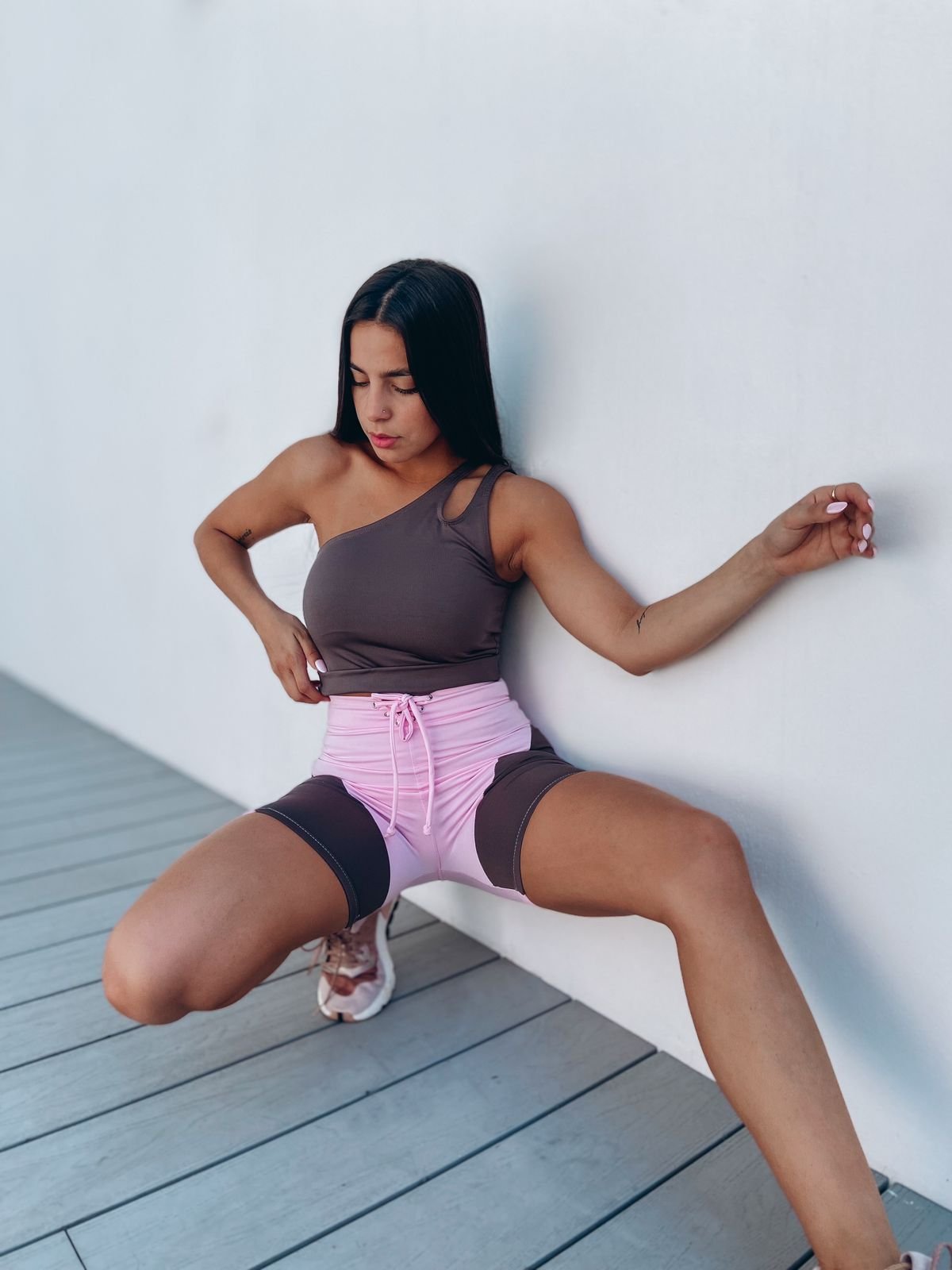 Biker recortes rosa /marròn