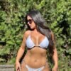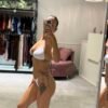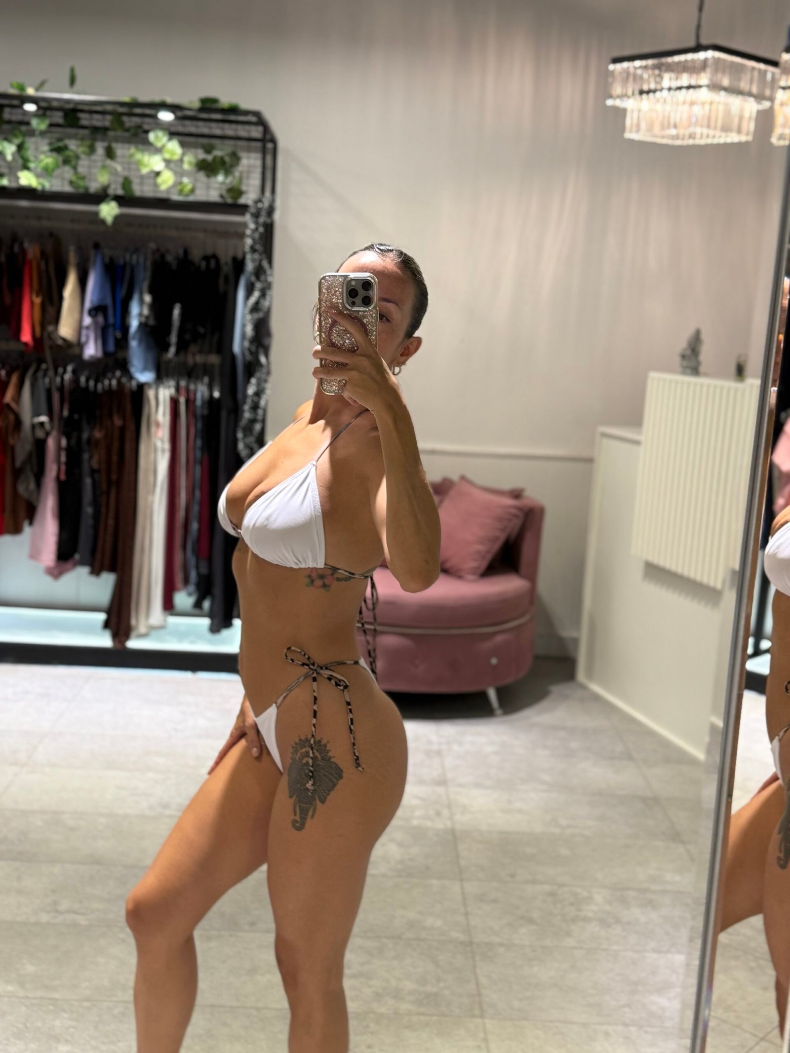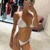 Bikini blanca con tiras print ( triángulito + less para atar a los costados )