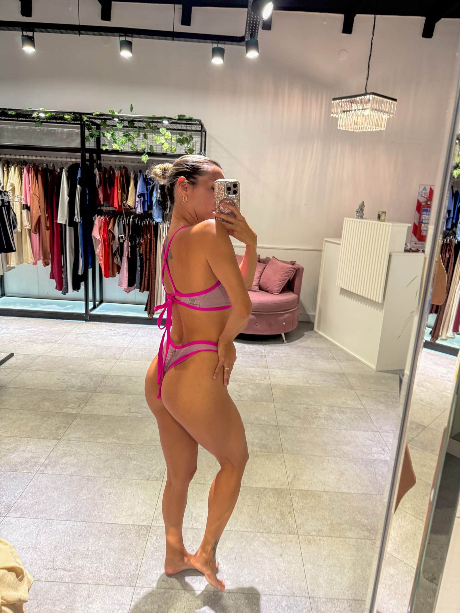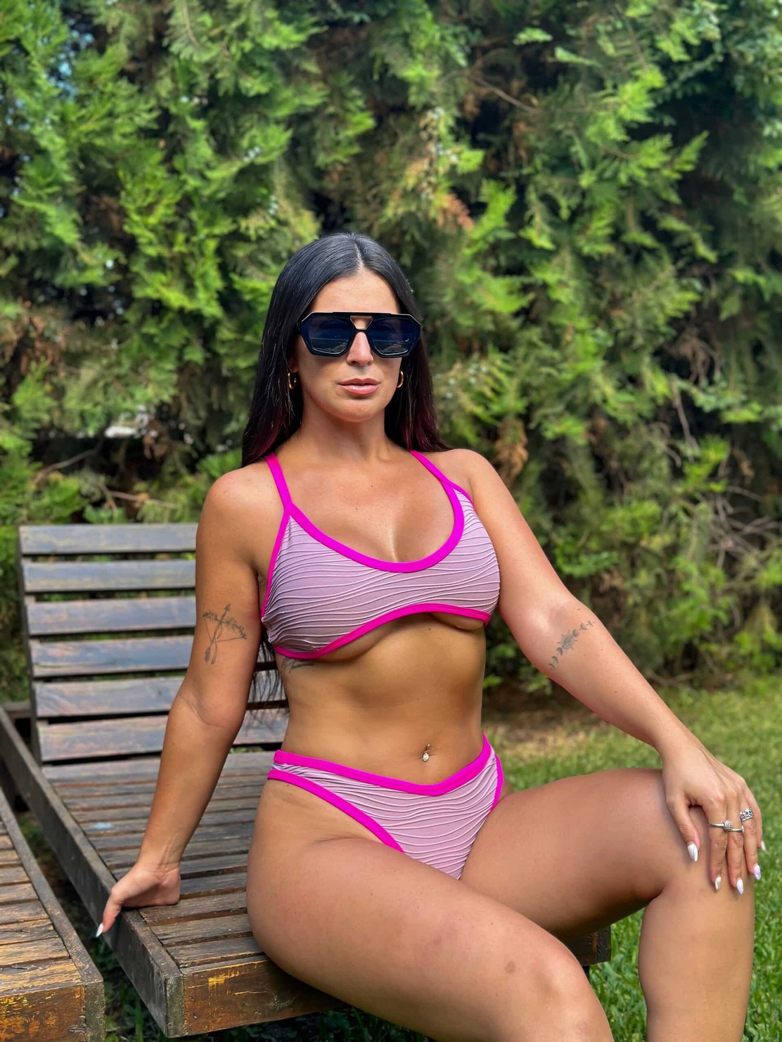 Bikini con textura Malva, con vivos fucsia flúor