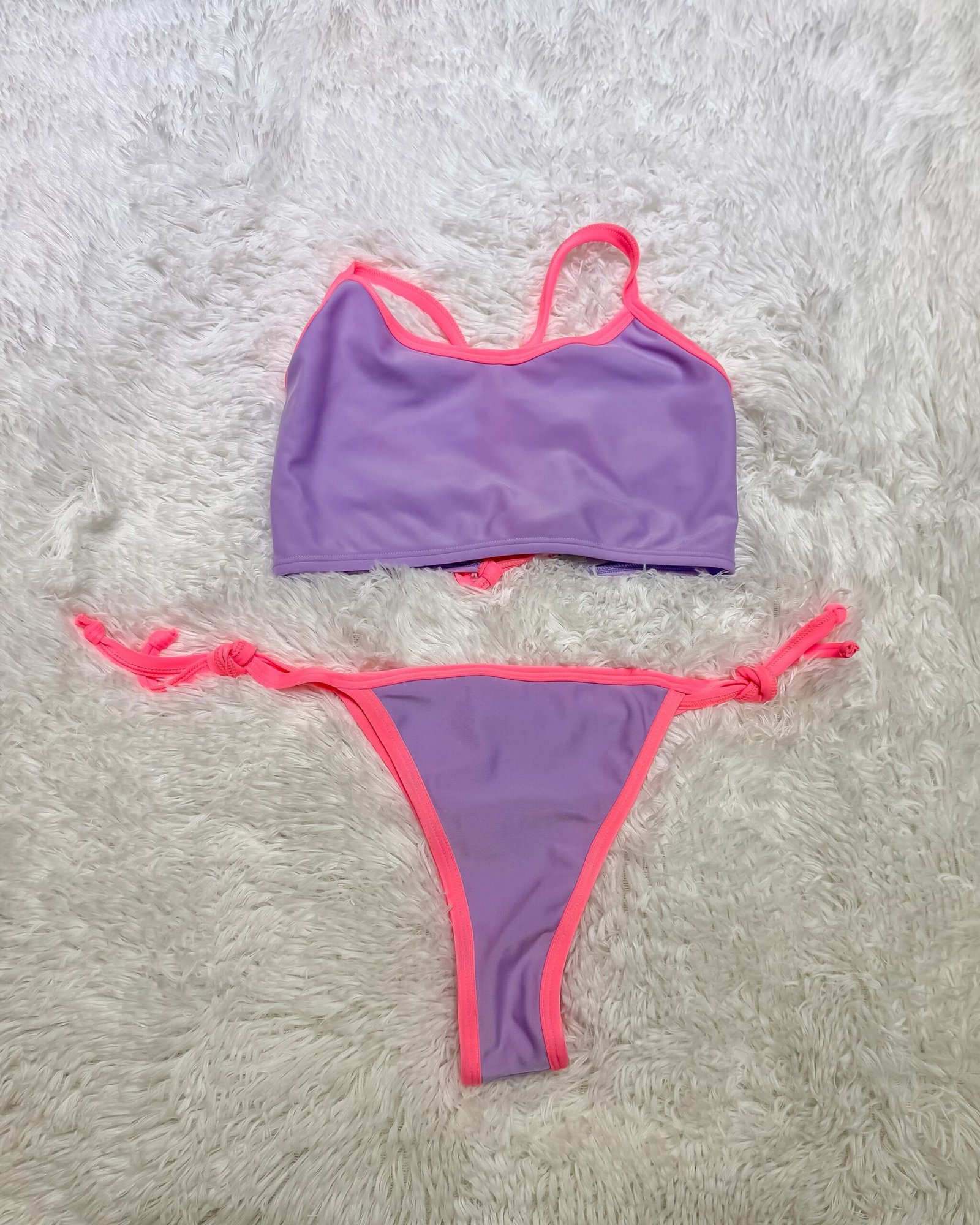 Top lila con salmón, con tiras para cruzar y regular atrás