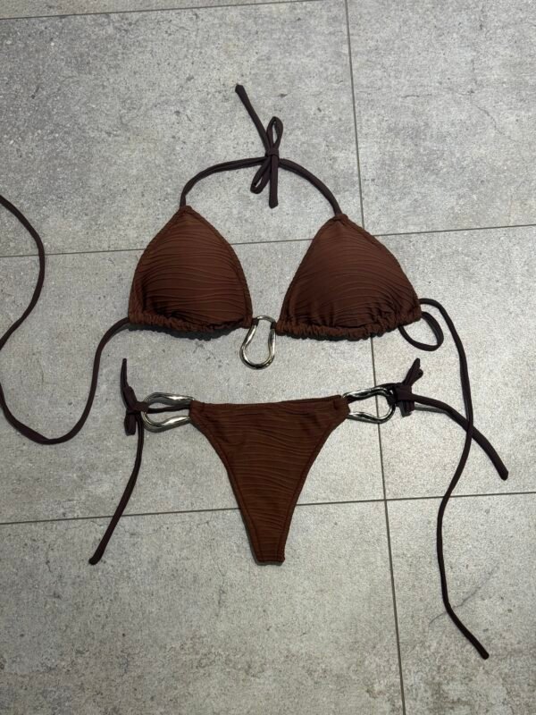 Bikini textura chocolate : opción tiras marrones / opción tiras crudo