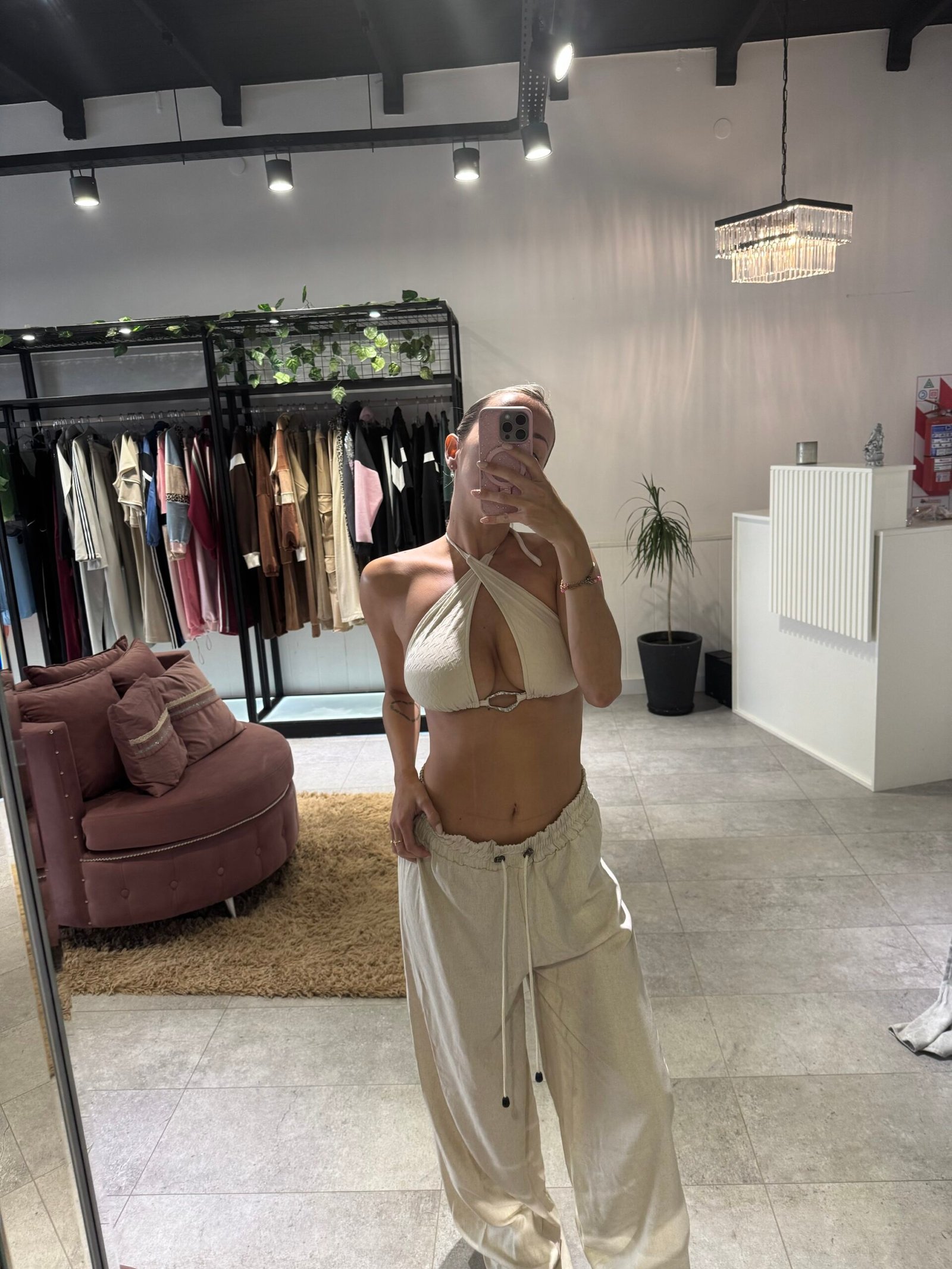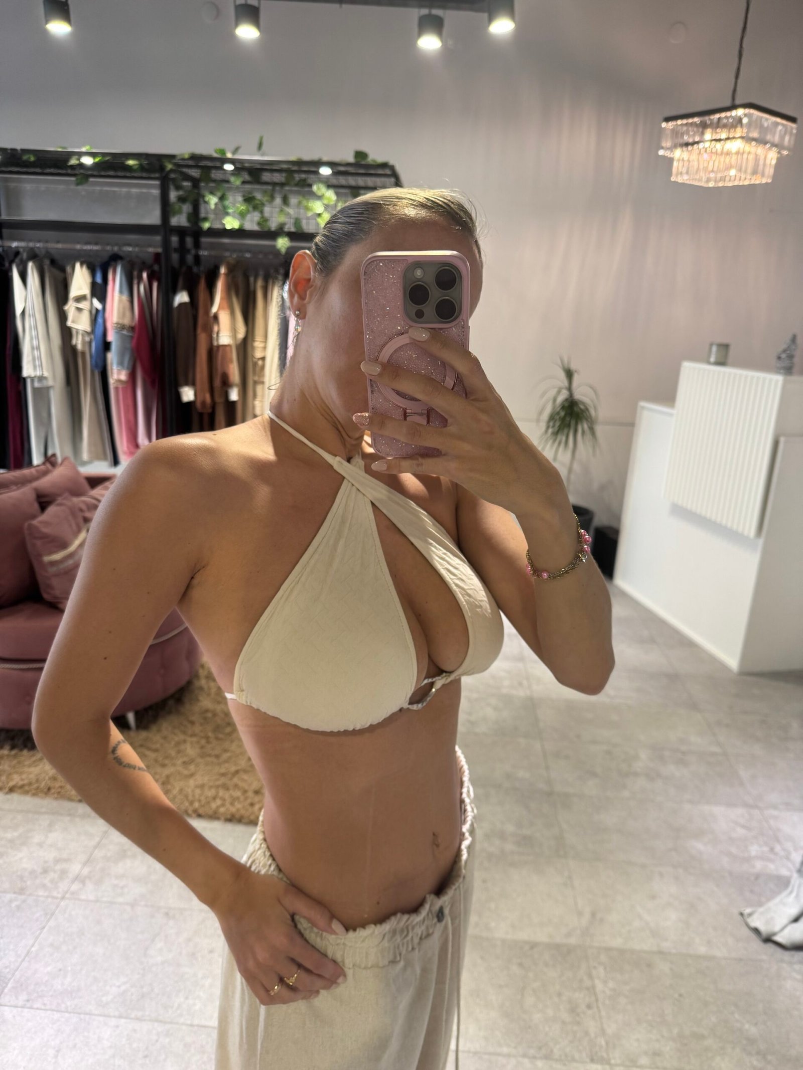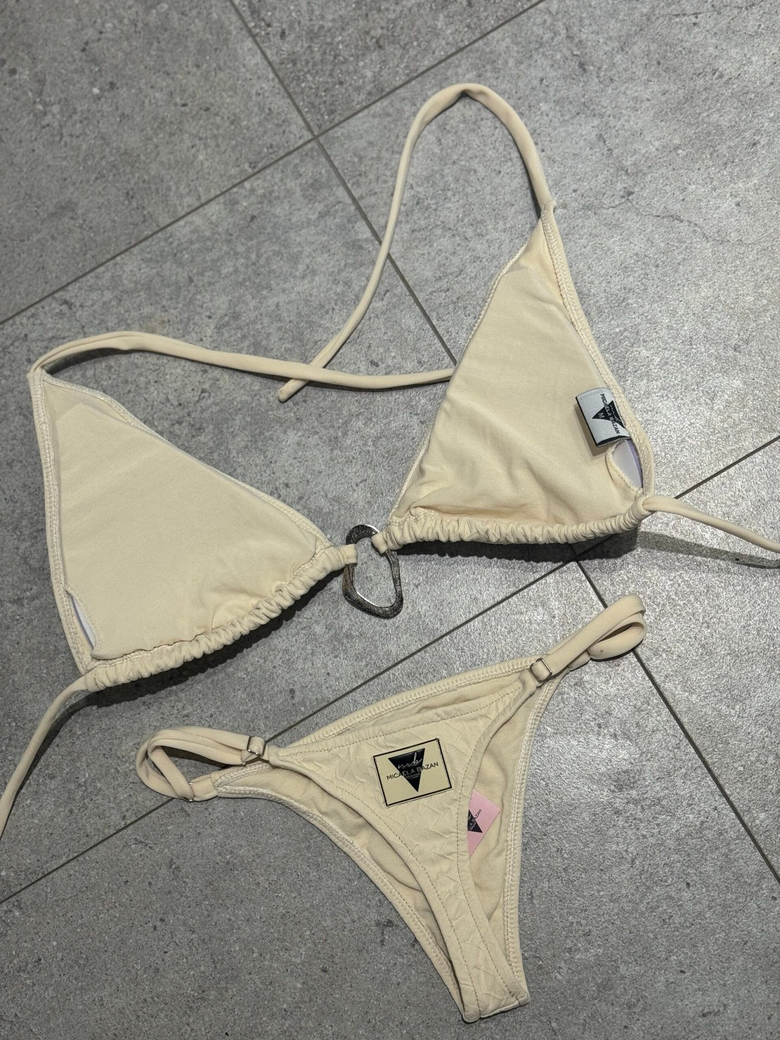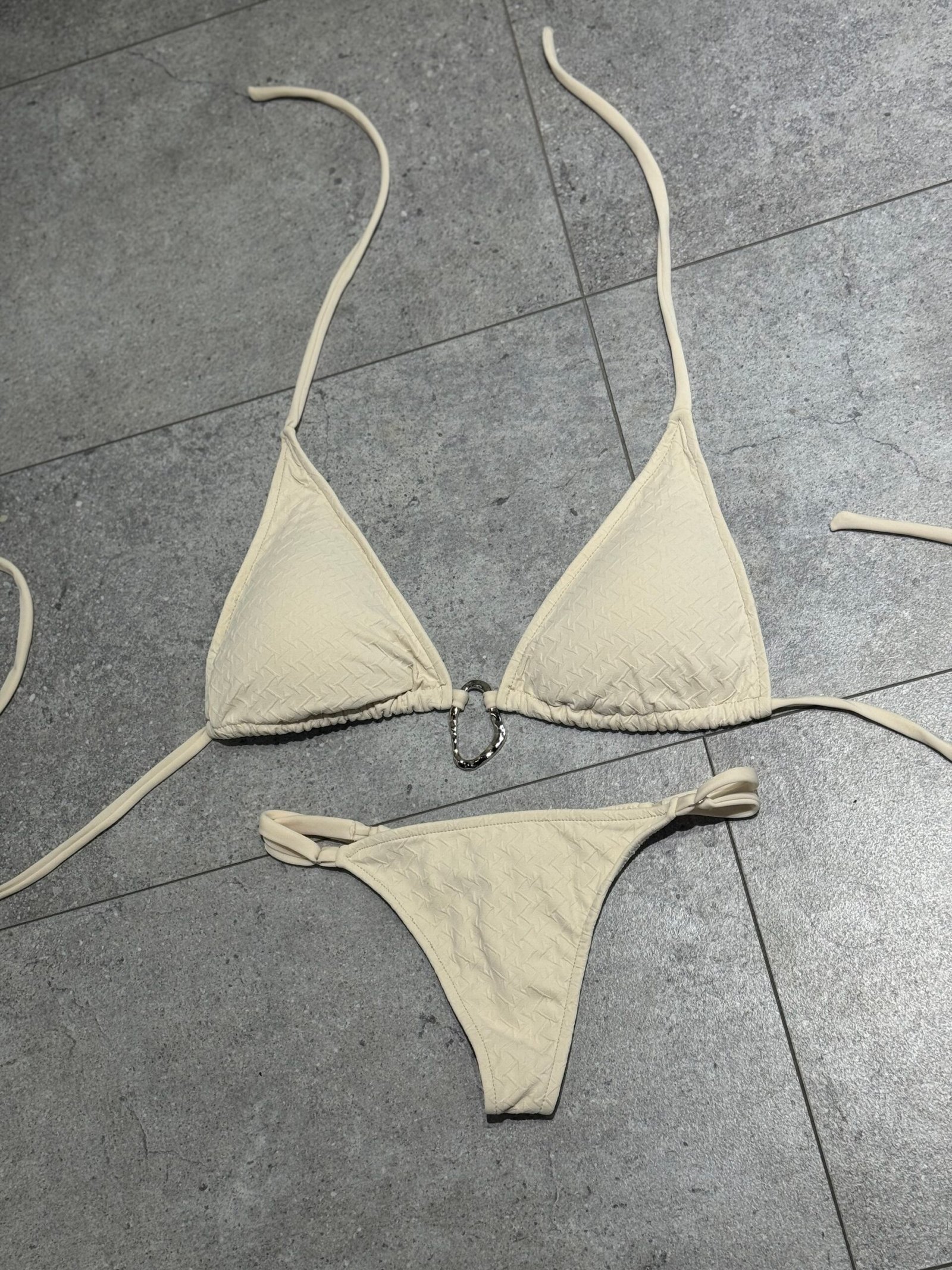 Bikini lycra texturada color crudo – triangulito largo con tazas desmontables ! Talles súper abarcativos