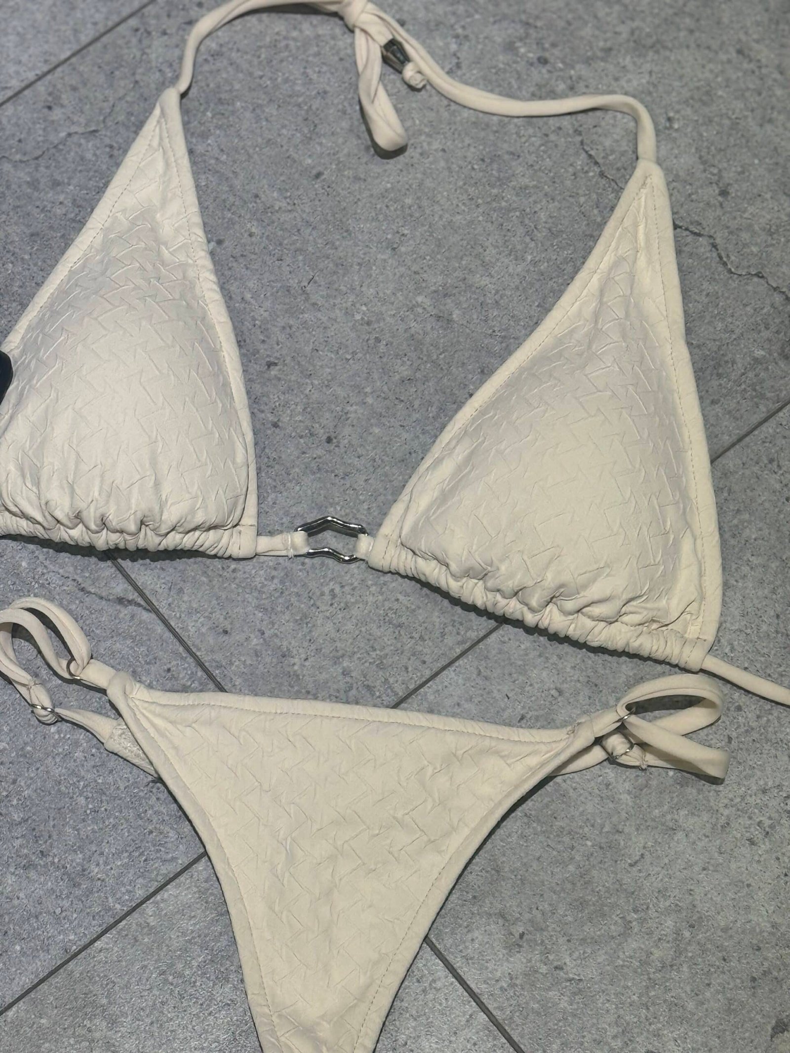 Bikini texturada crudo con herraje ovalado