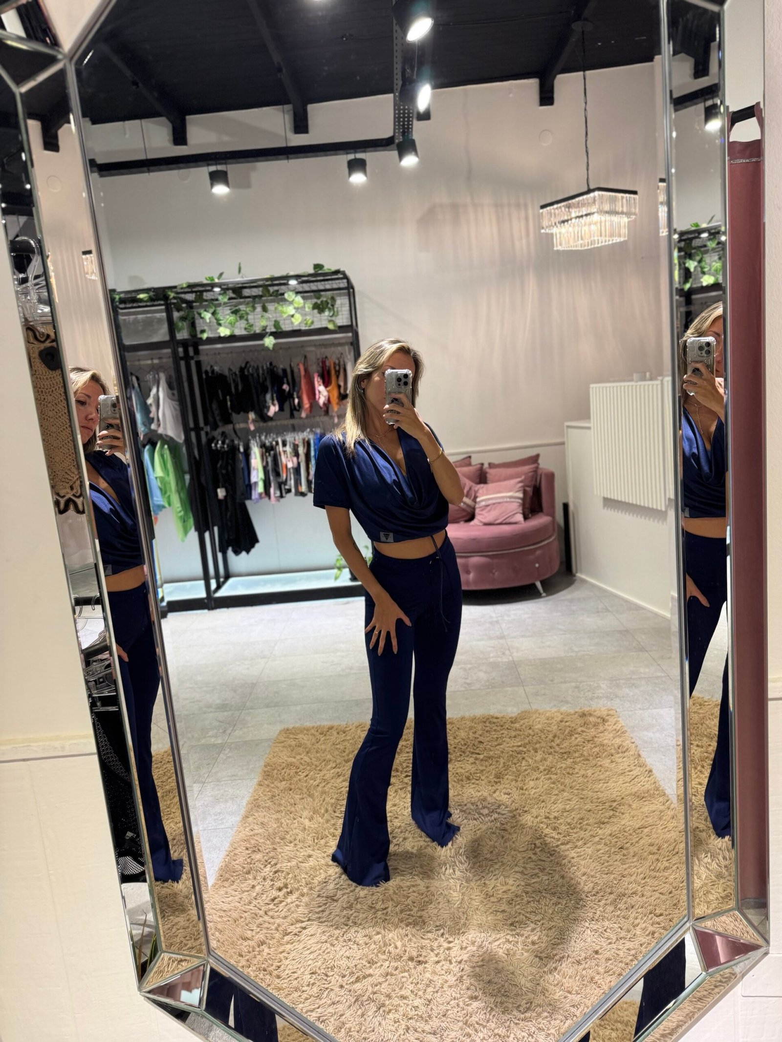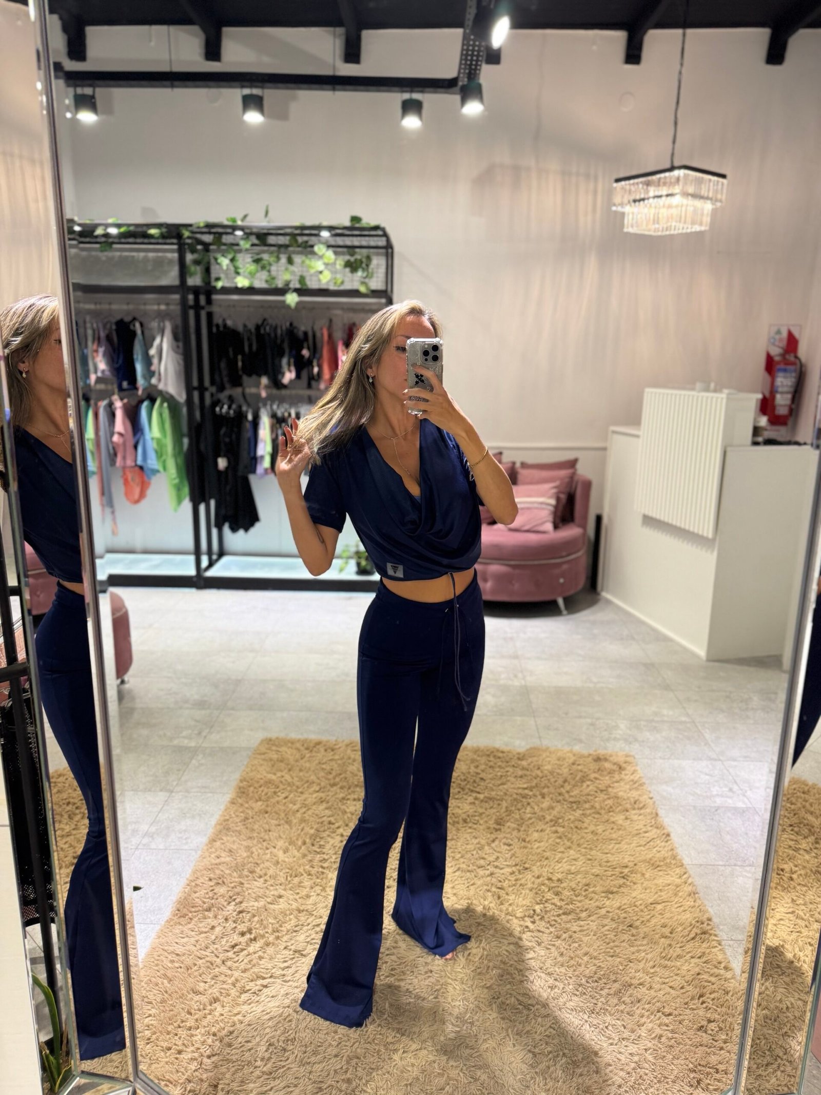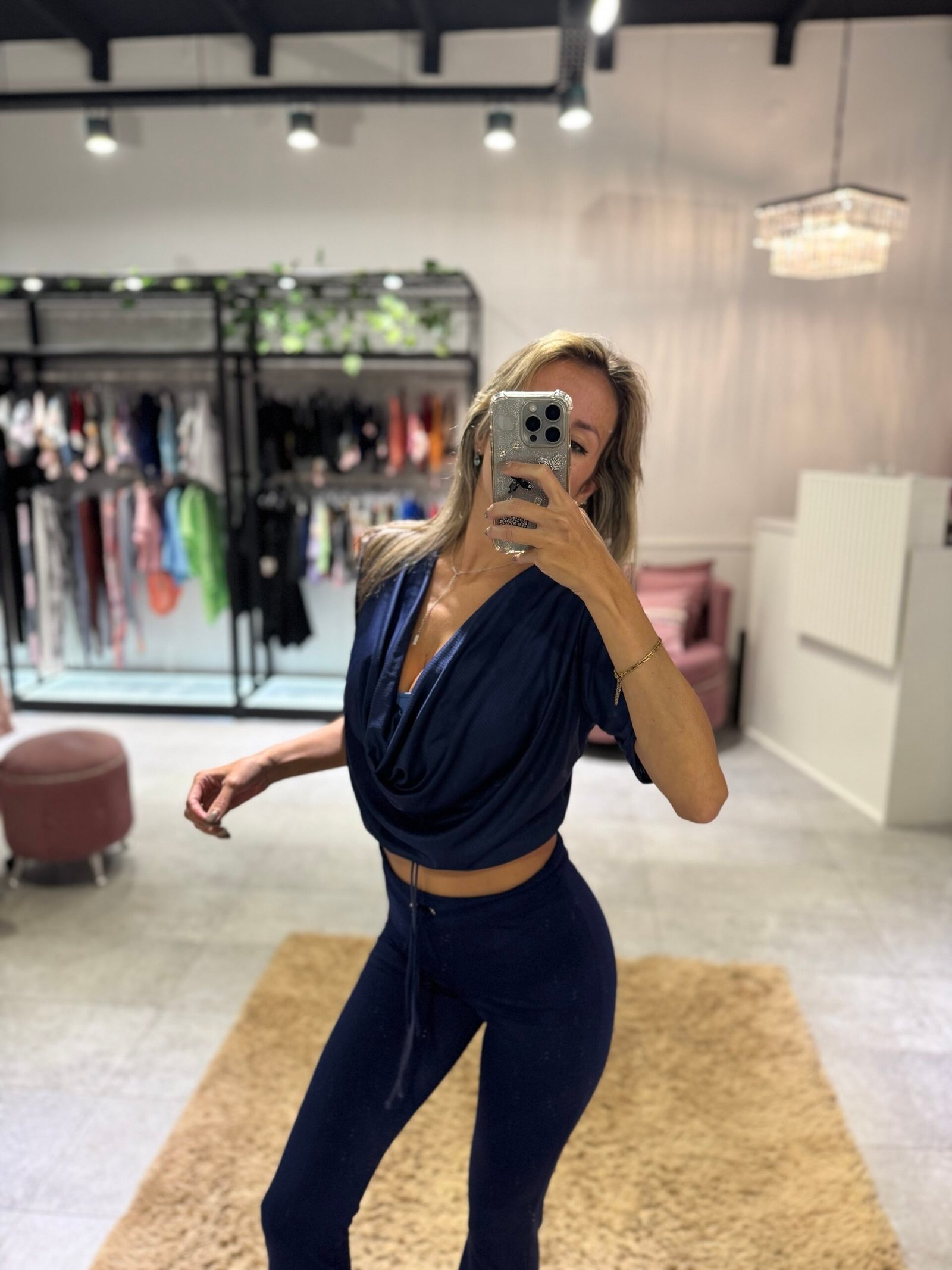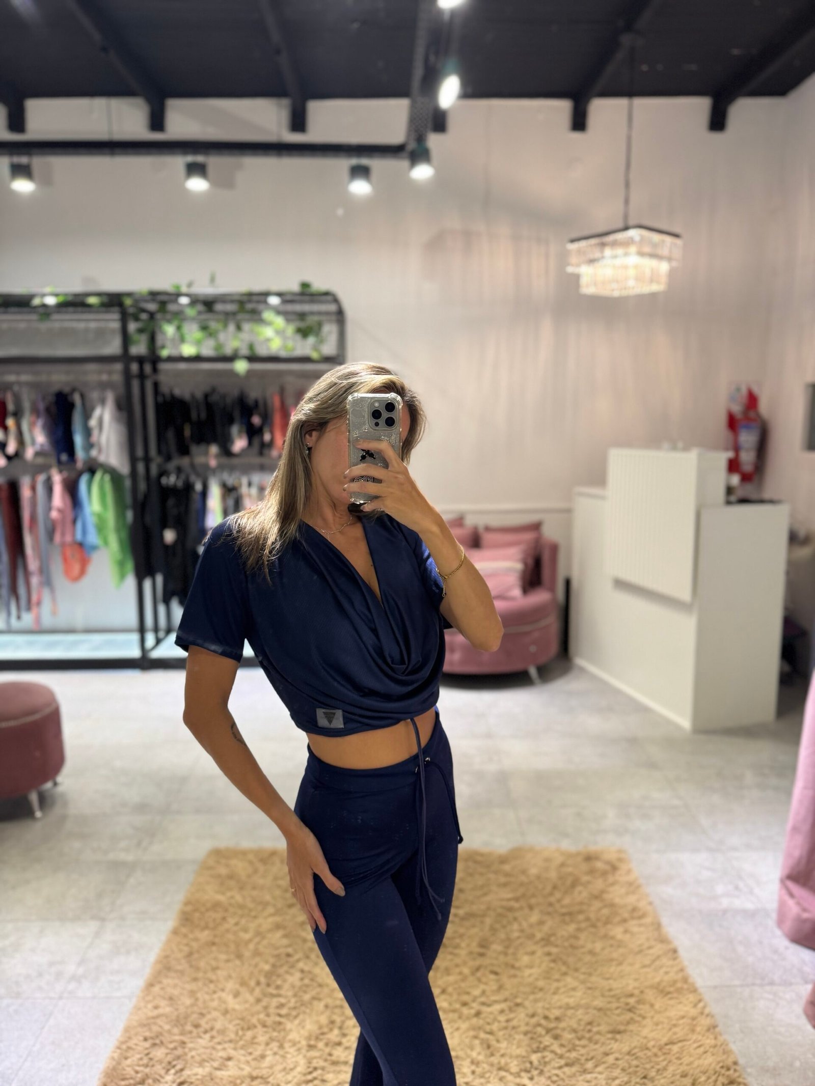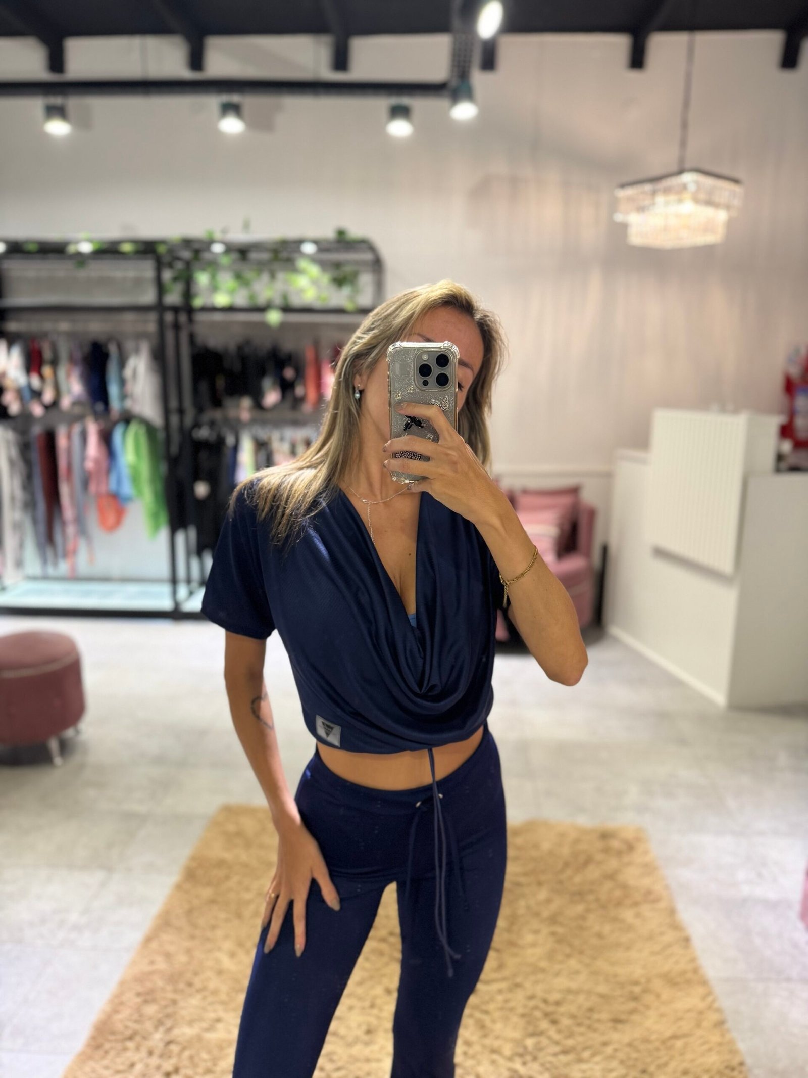 Blusa azul marino con cuello volcado Talle L Secado rápido