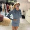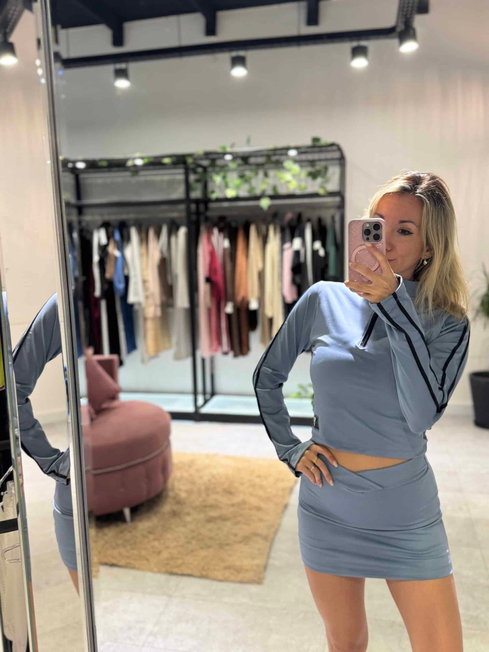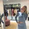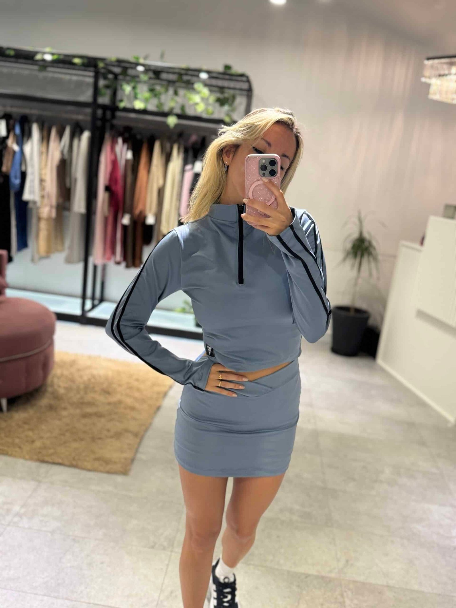 Buzo medio cierre mangas largas. Color azul aero con tiras negras laterales