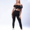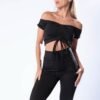 Calza negra 3/4 con frunce y tiras