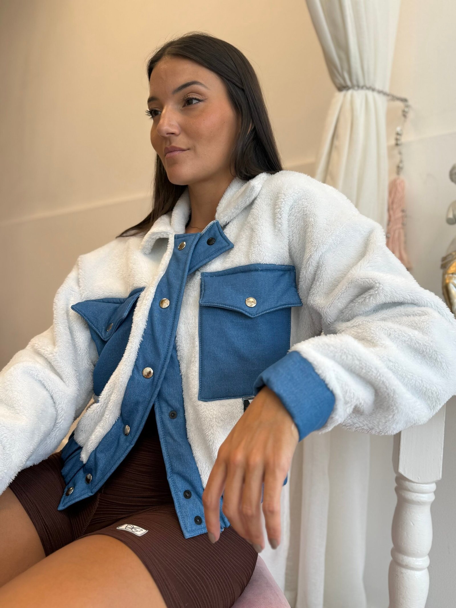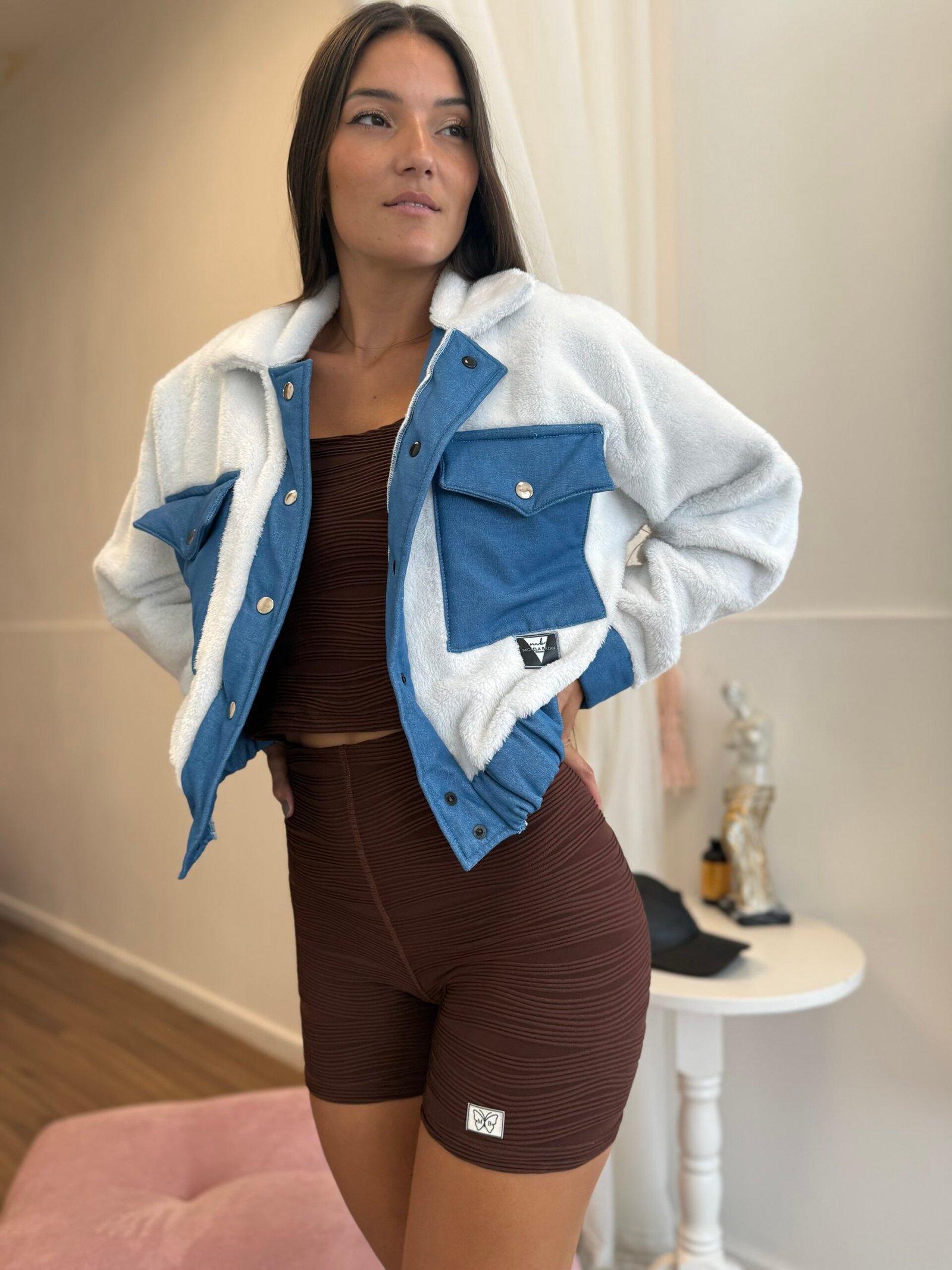 Campera liviana de textura suave y diseño bicolor, pensada para acompañarte en movimiento.