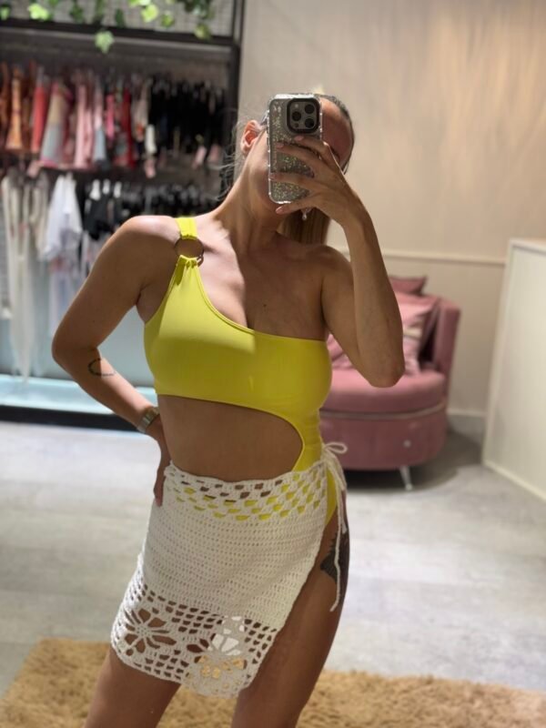 Enteriza amarilla de un hombro con argolla y vacío en cintura – TM