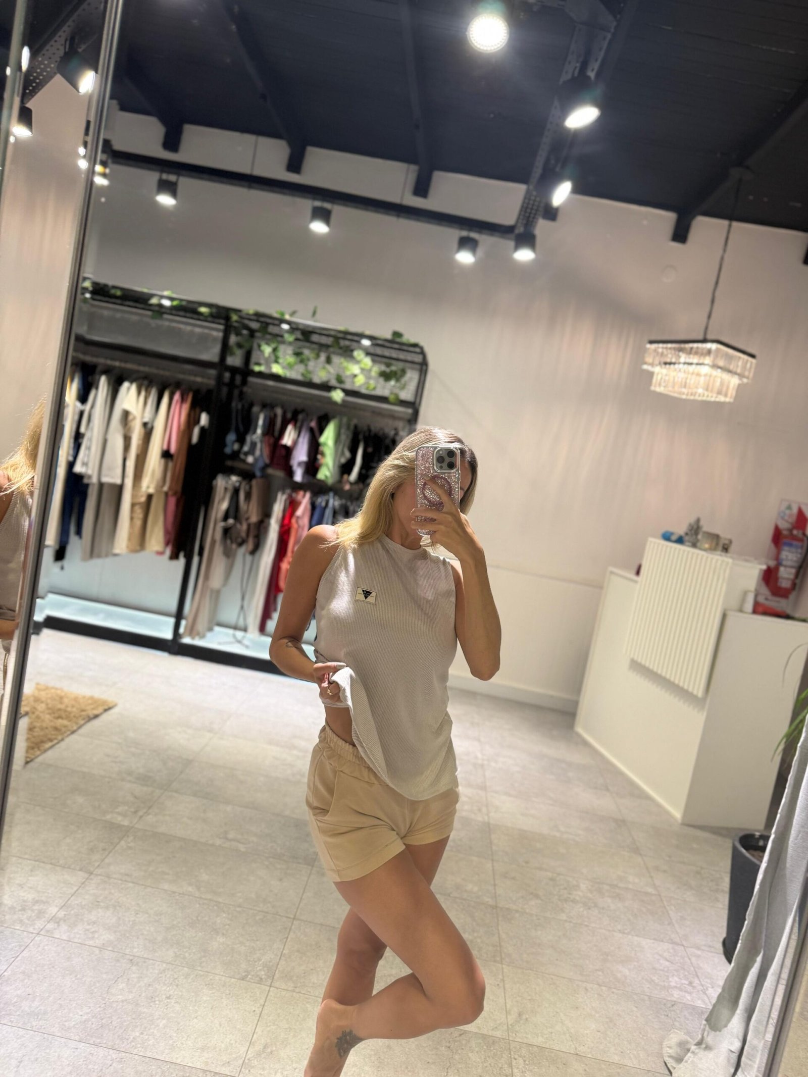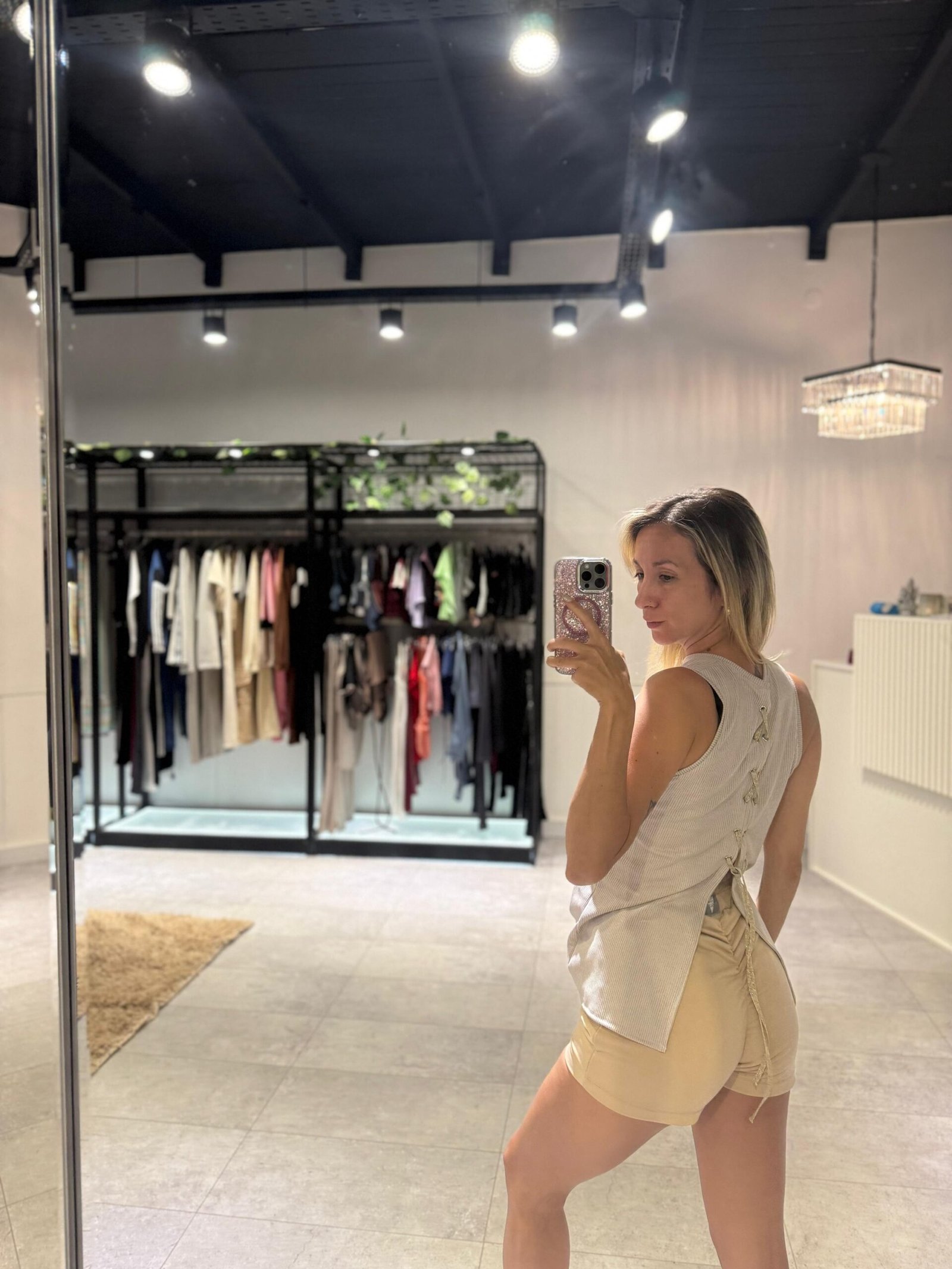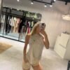 Musculosa de morley color crudo. Detalle de cruce en espalda