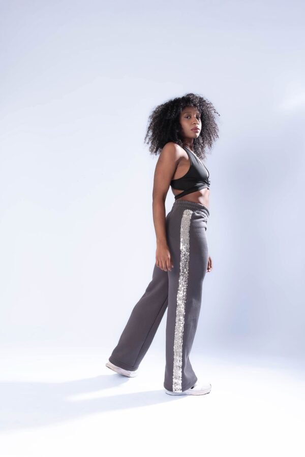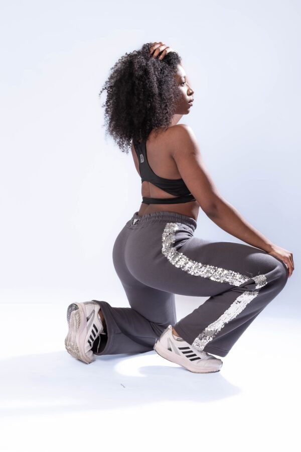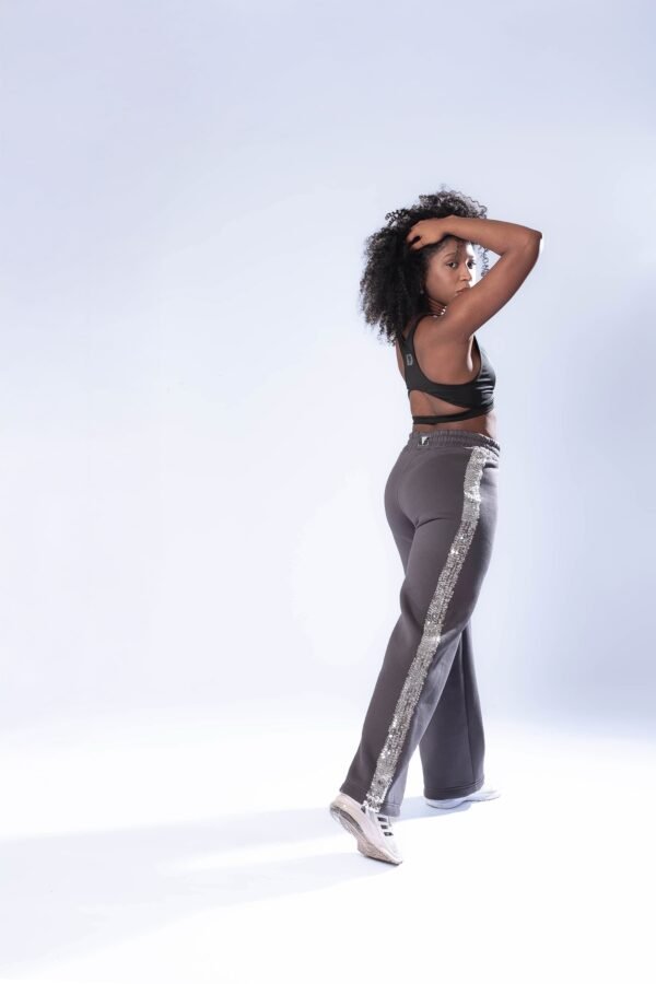 Pantalón Jogger gris topo con franja lentejuelas plateadas