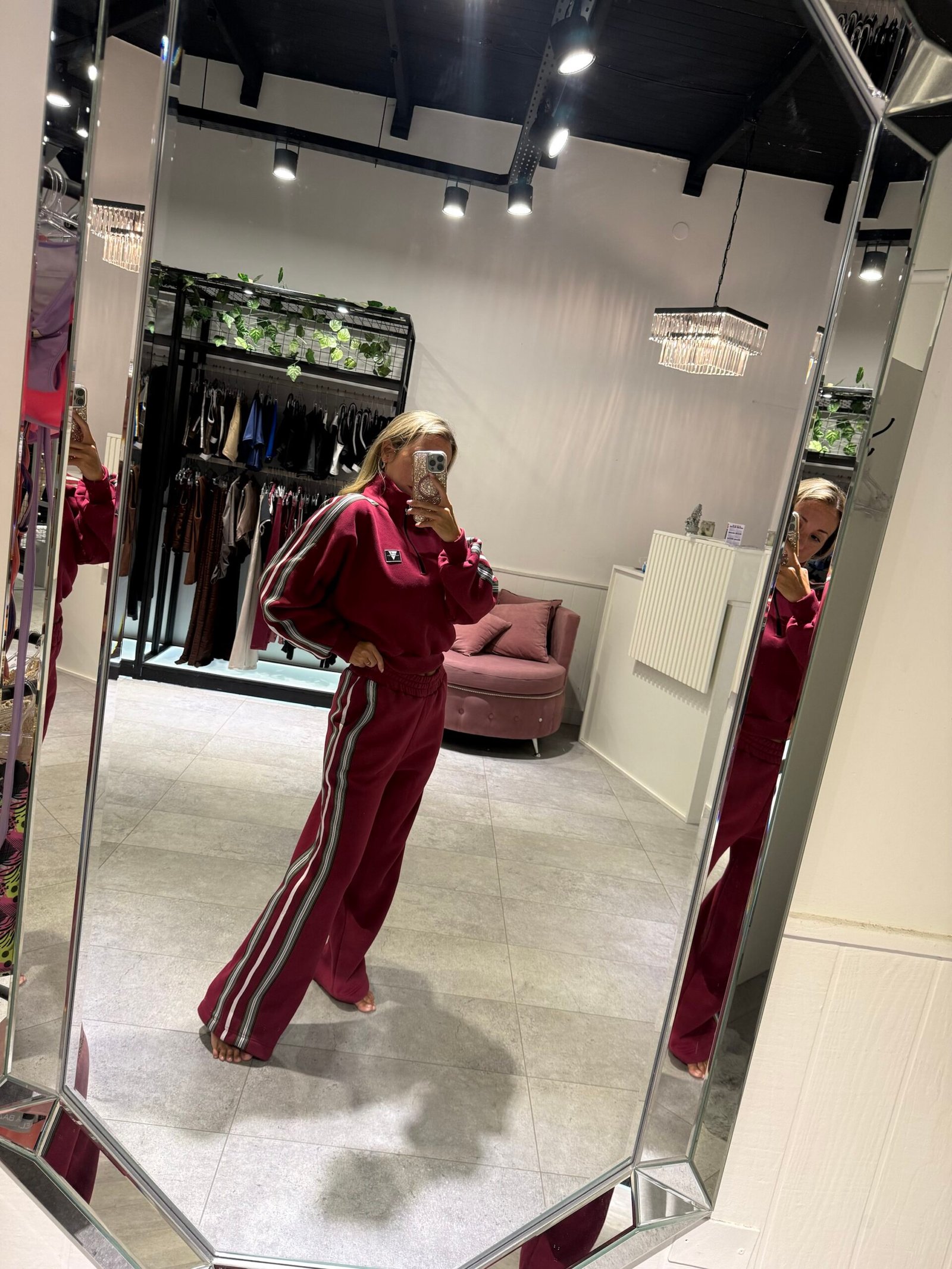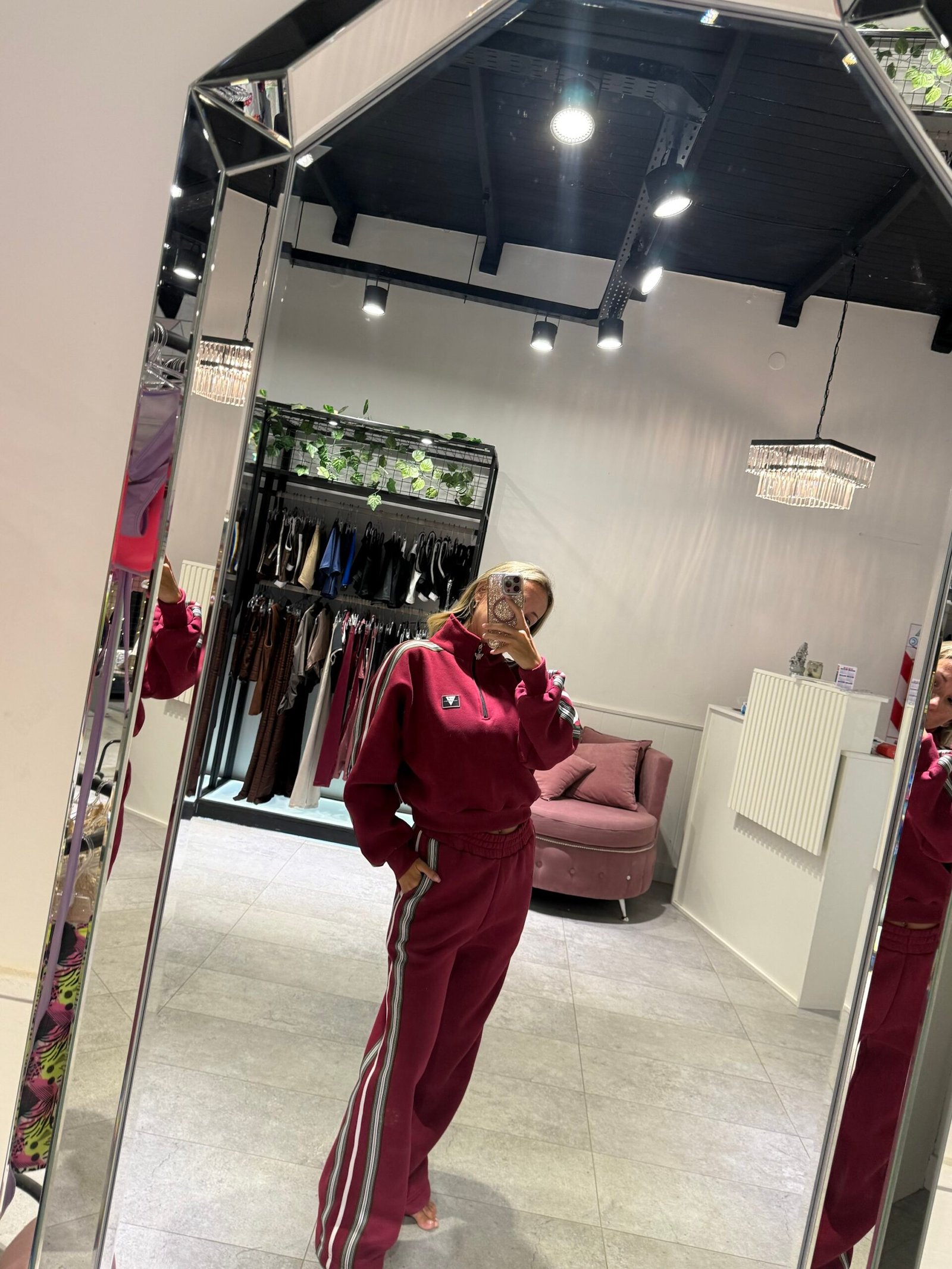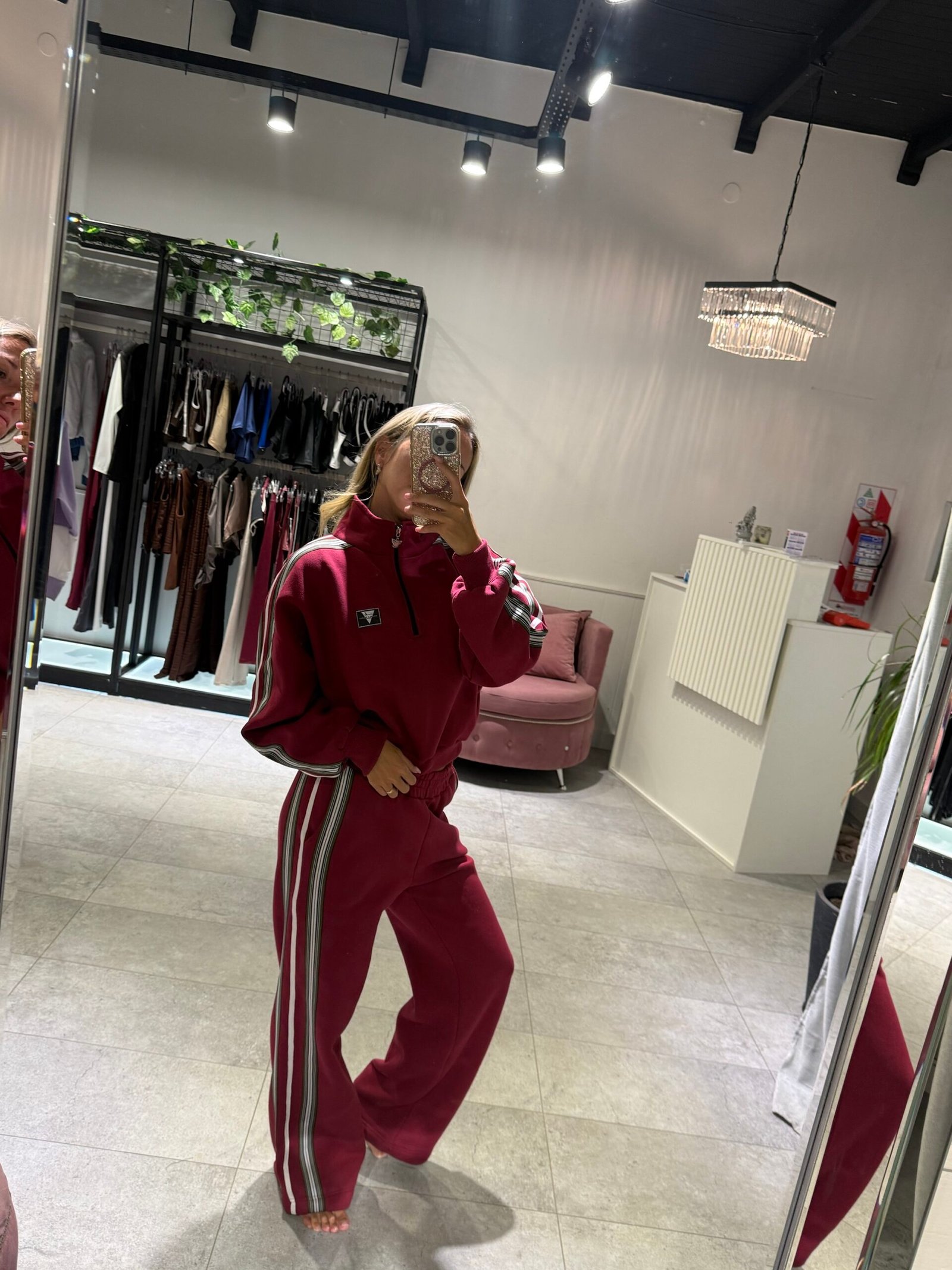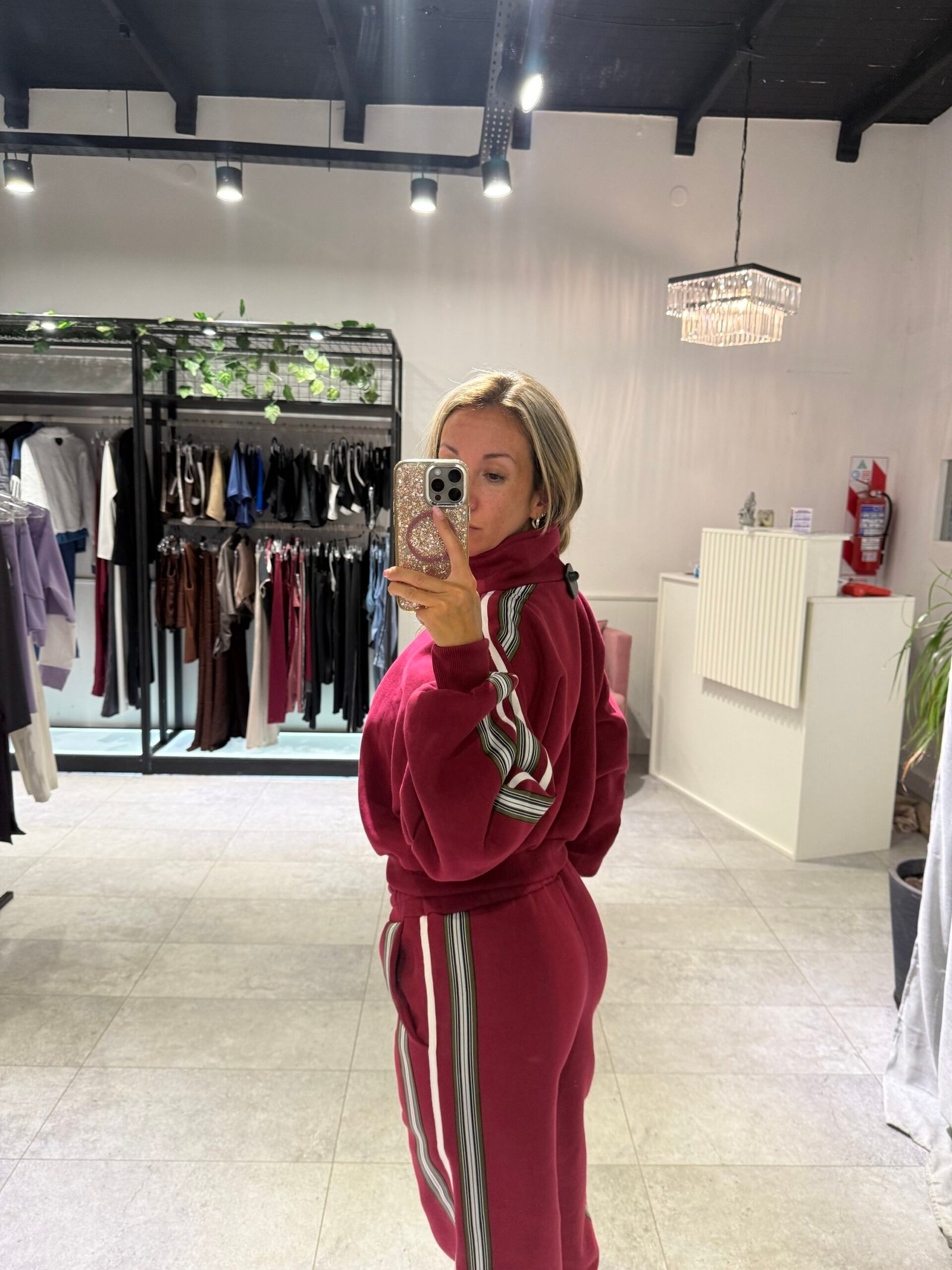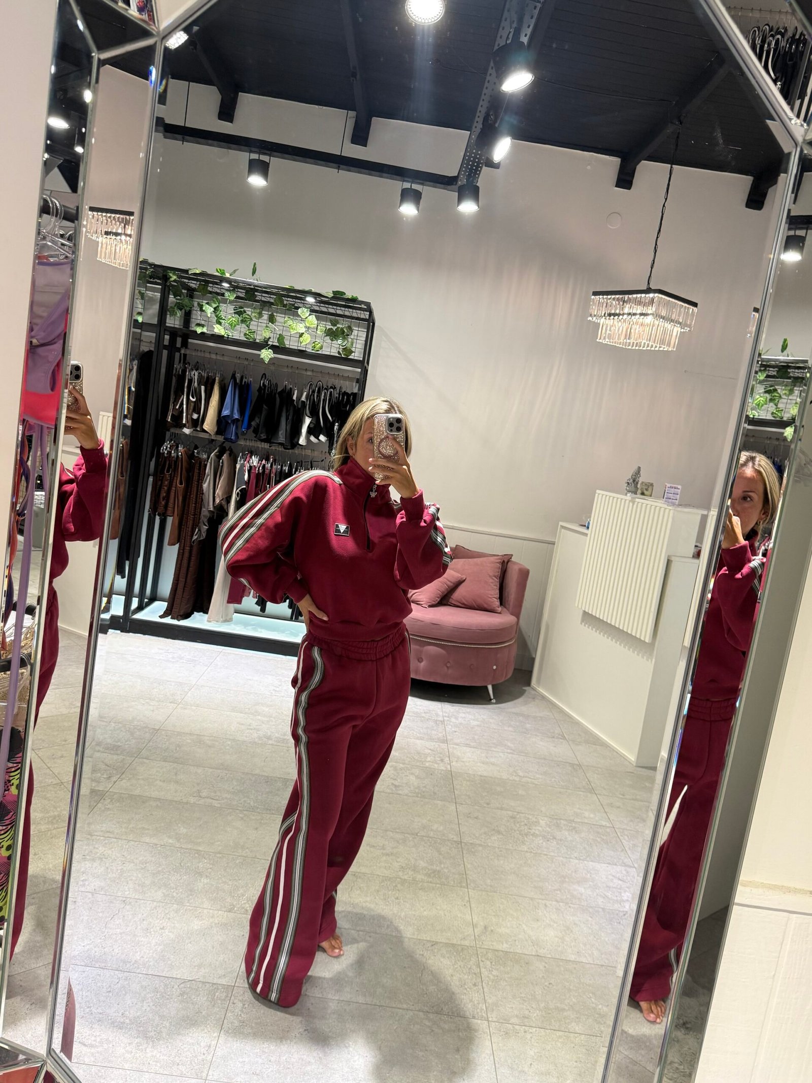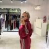 Set bordo con detalle en laterales de Mangas y pantalón. Con frisa – buzo + jogger TL