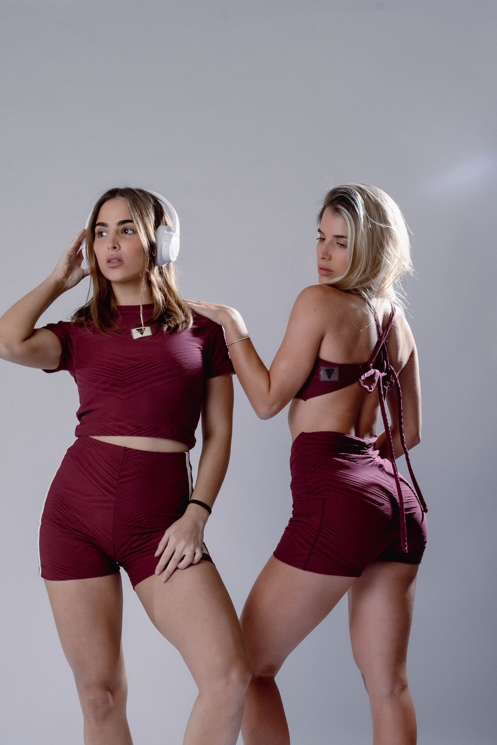 Set bordo con textura ( Biker cintura cruzada + top con tiras cruzadas espalda )