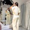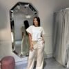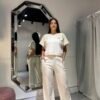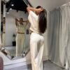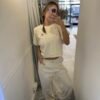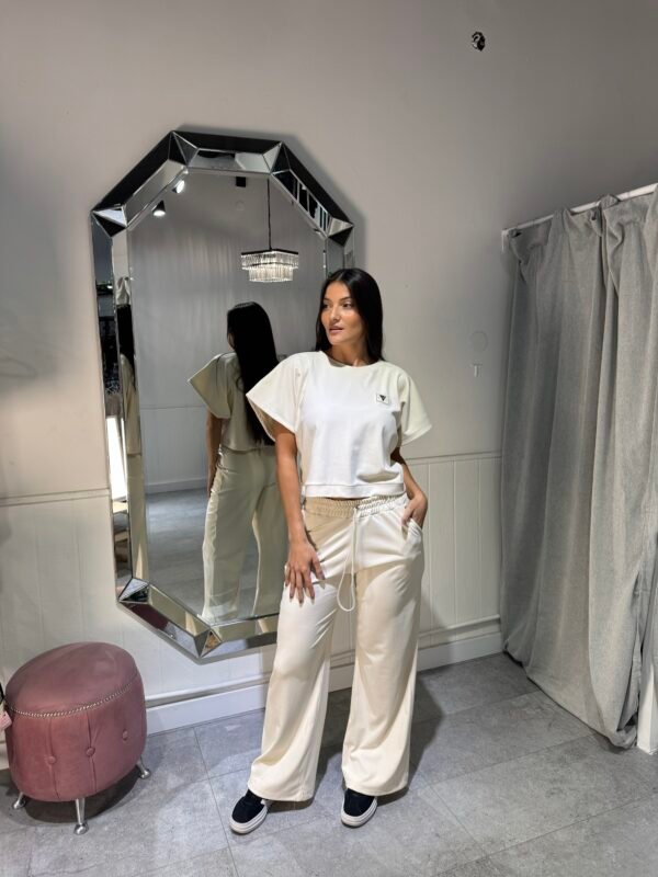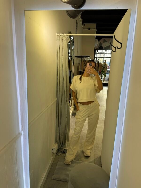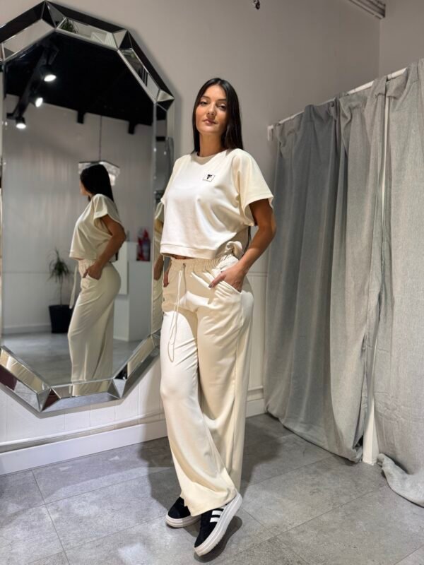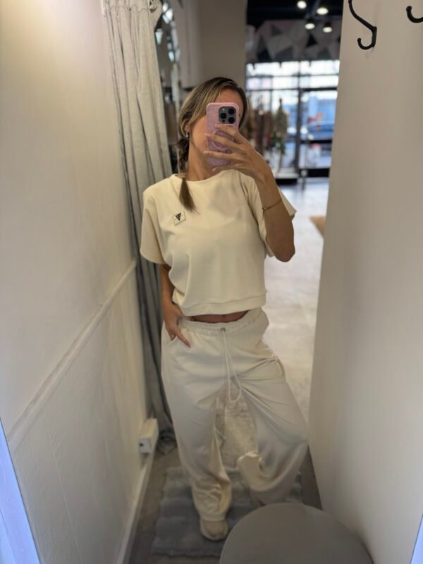 La tela es una lycra con cuerpo, muy suave al tacto, pareciera gamuzada. Es muy elastizada. Tiene un calce hermoso