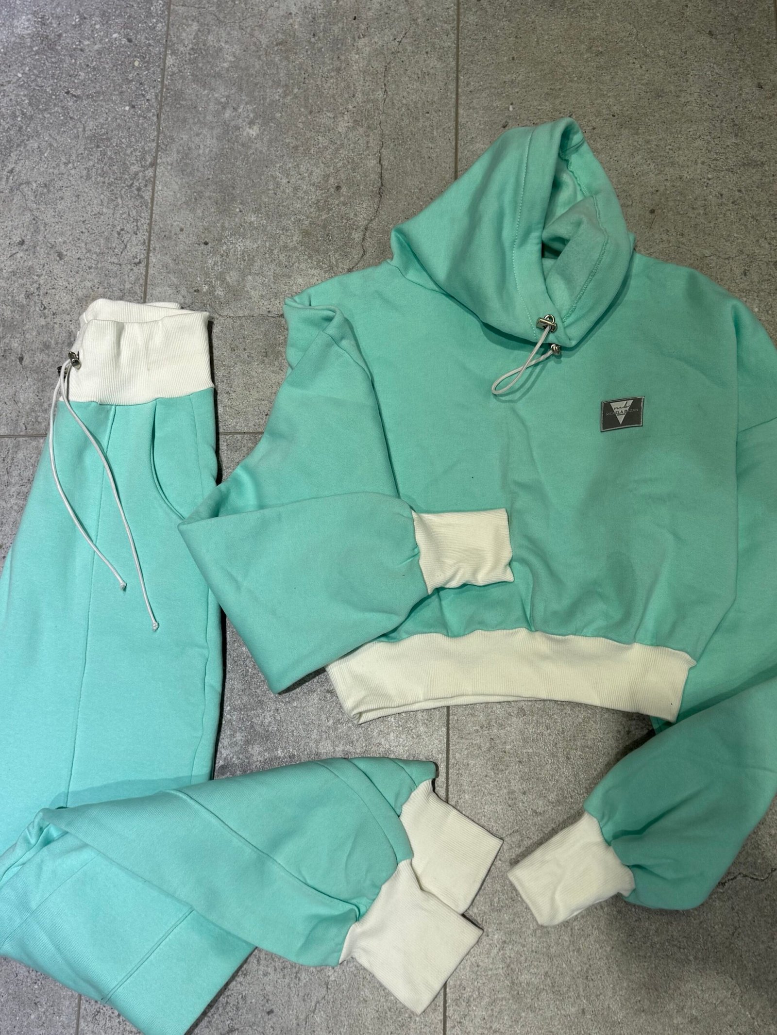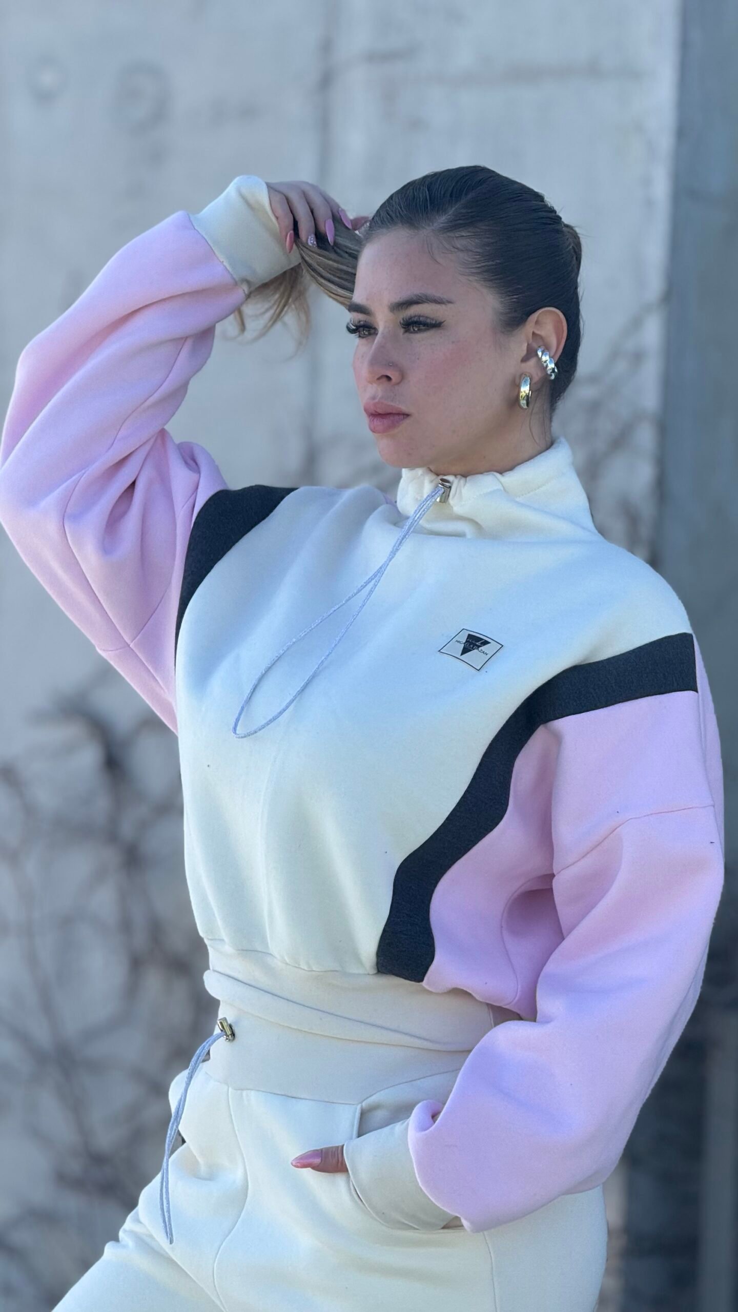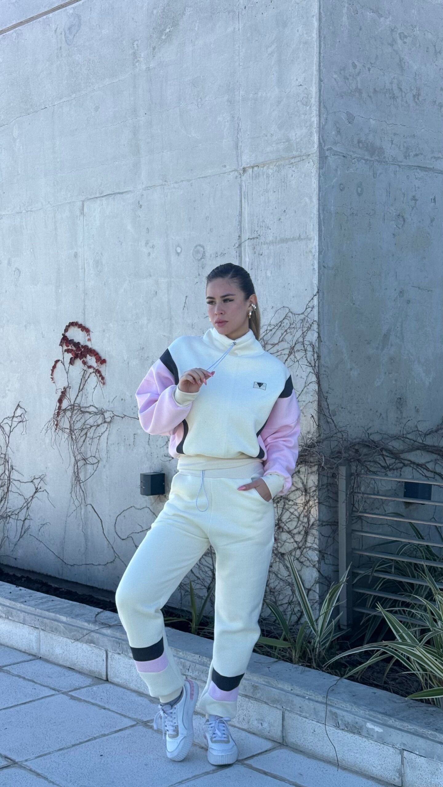 celeste con gris topo, verde agua con crudo, magenta, gris melange, gris topo, negro, verde beige con crudo, bordó con beige, crudo con rosa y gris topo, gris topo con rosa y crudo