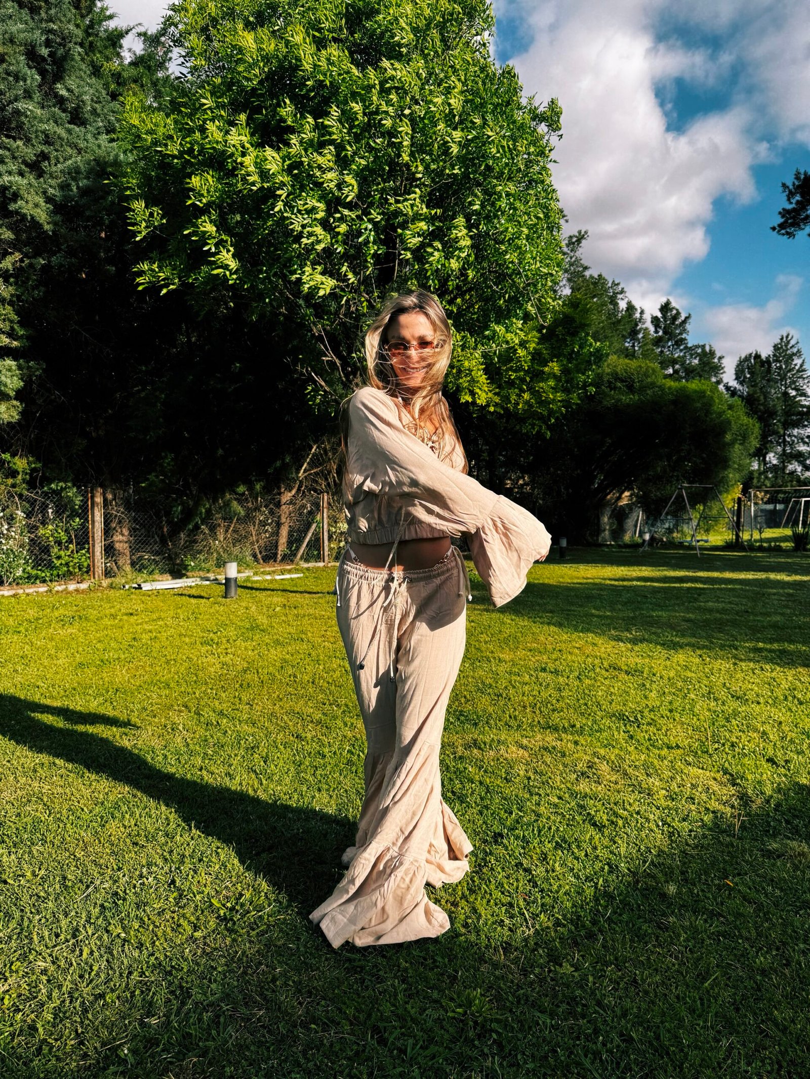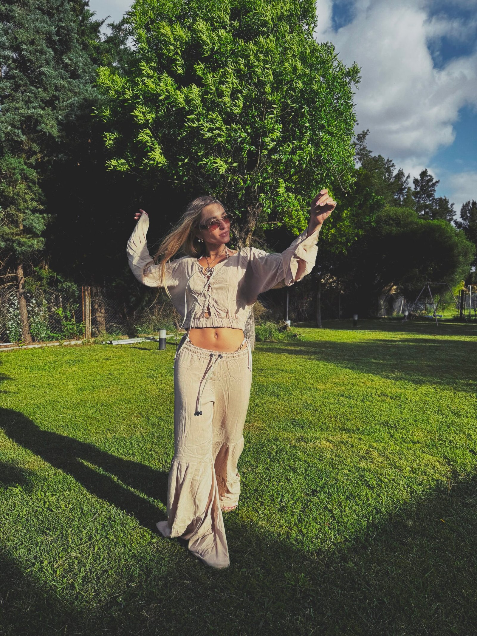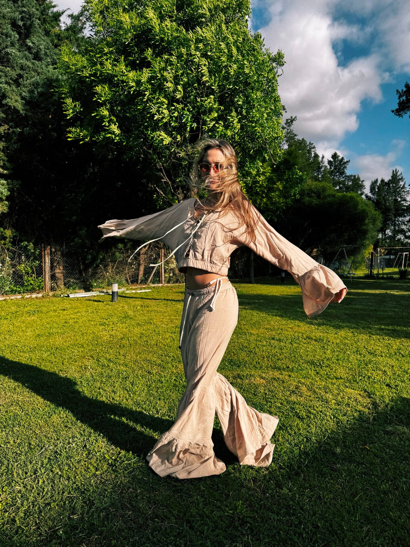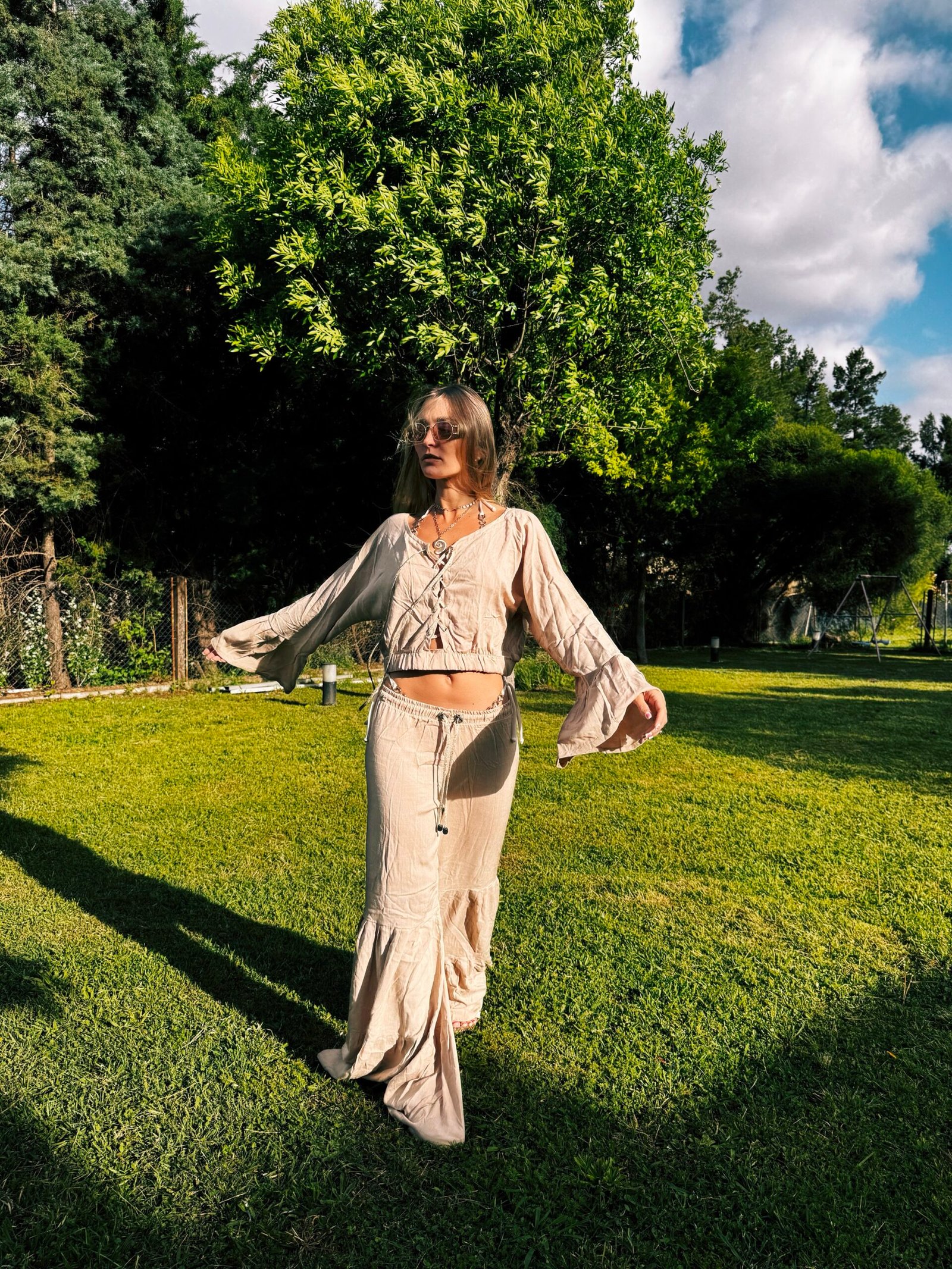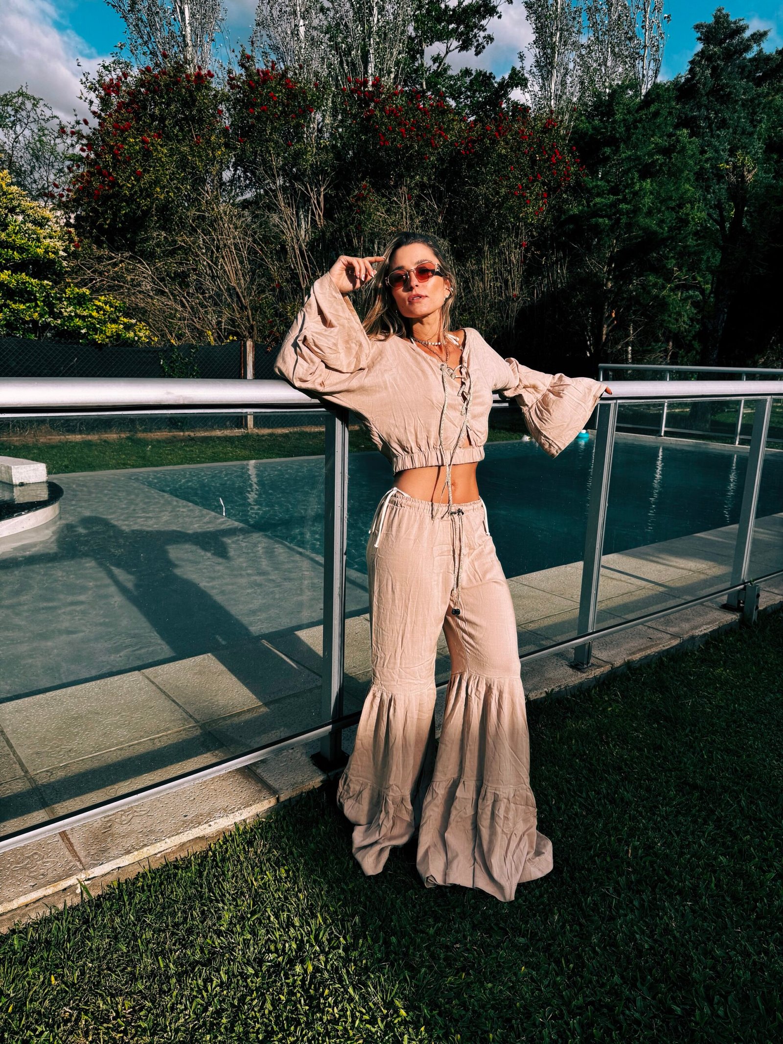 Pantalón con recortes que forman pliegues y volados