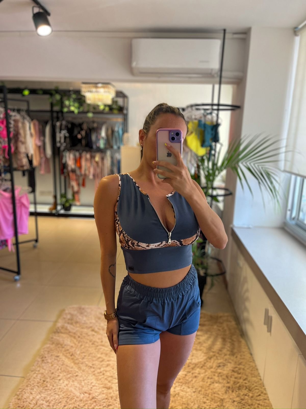 Top Rùstico con lycra gris topo con cierre combinado