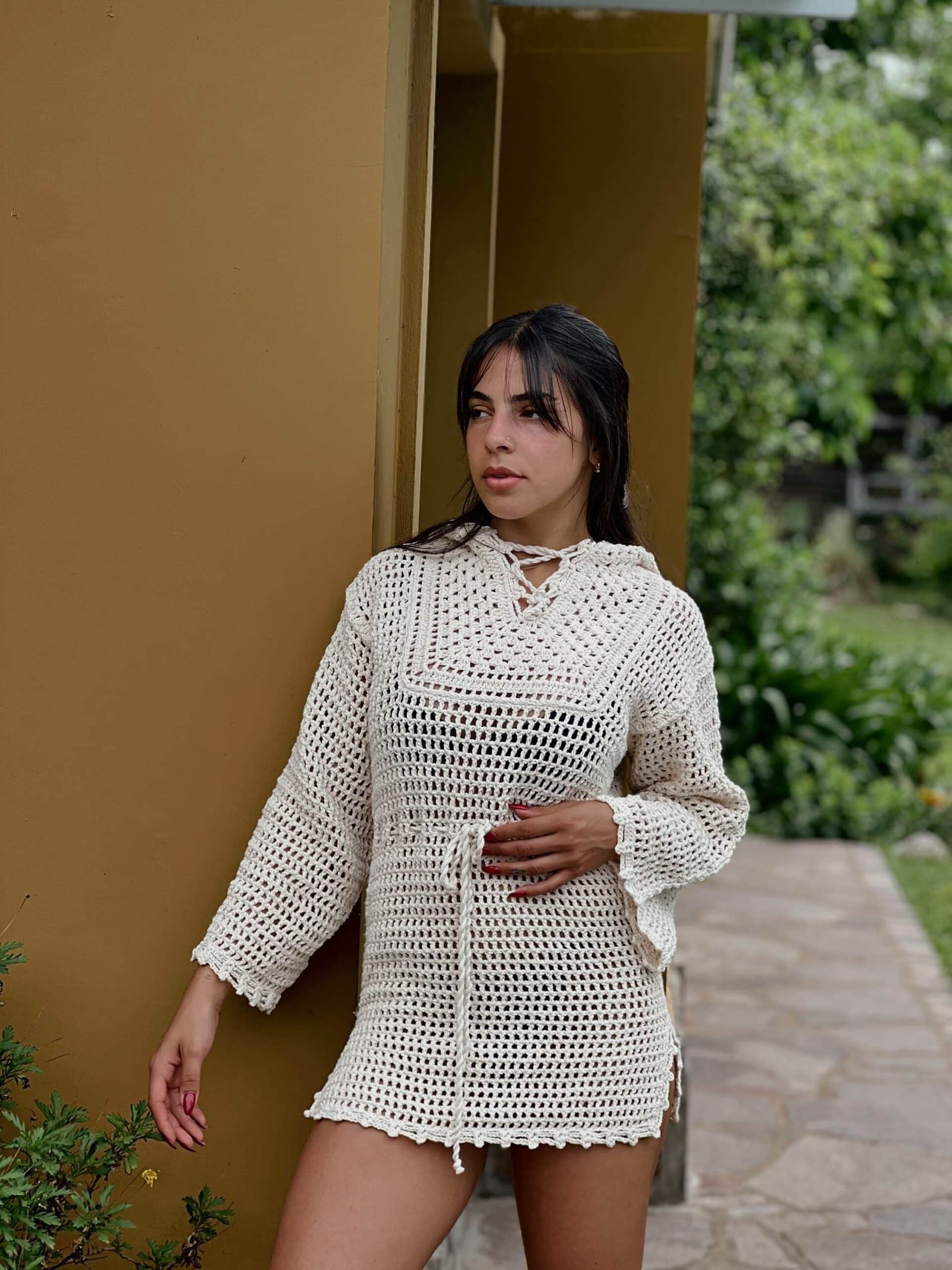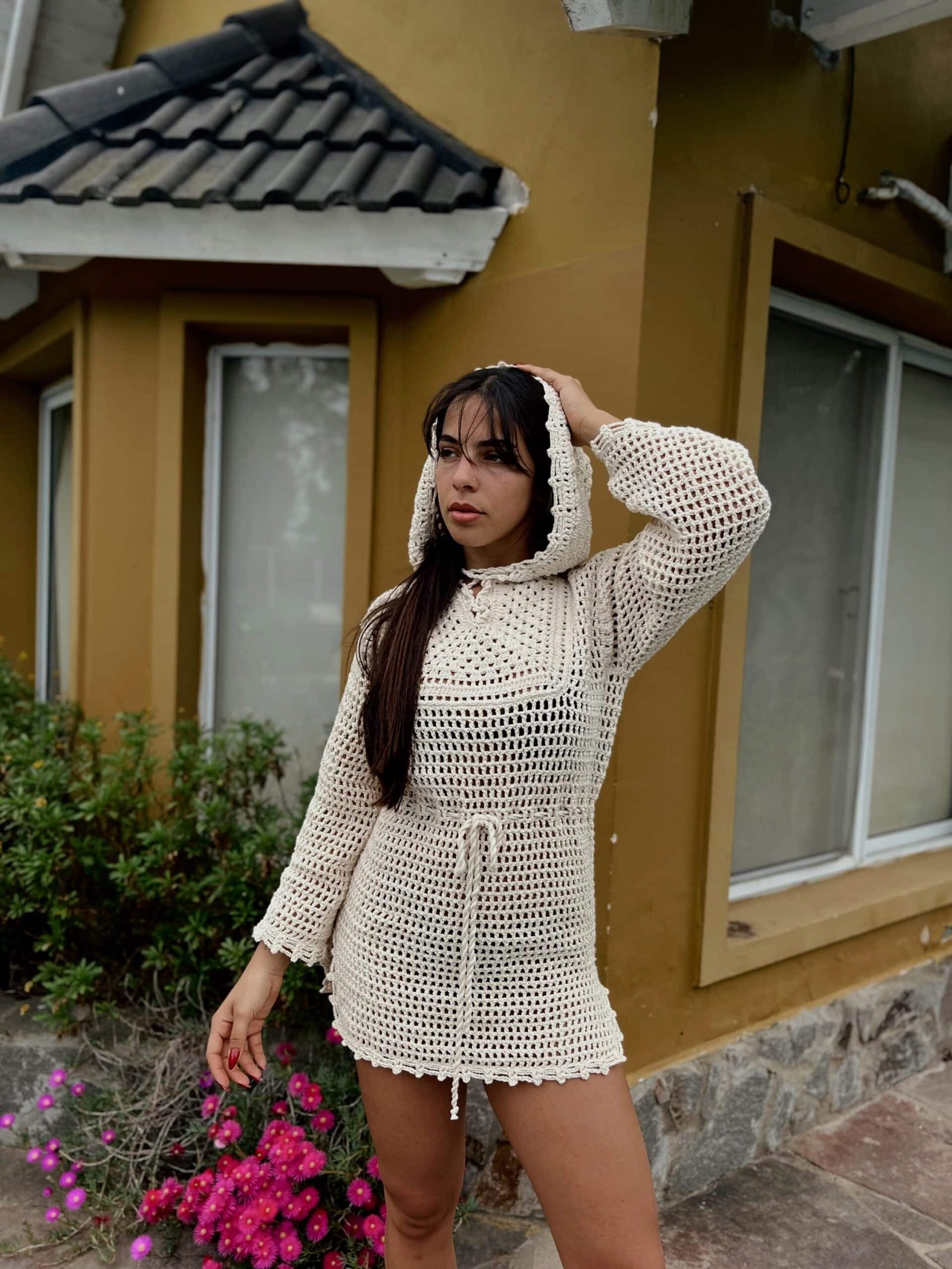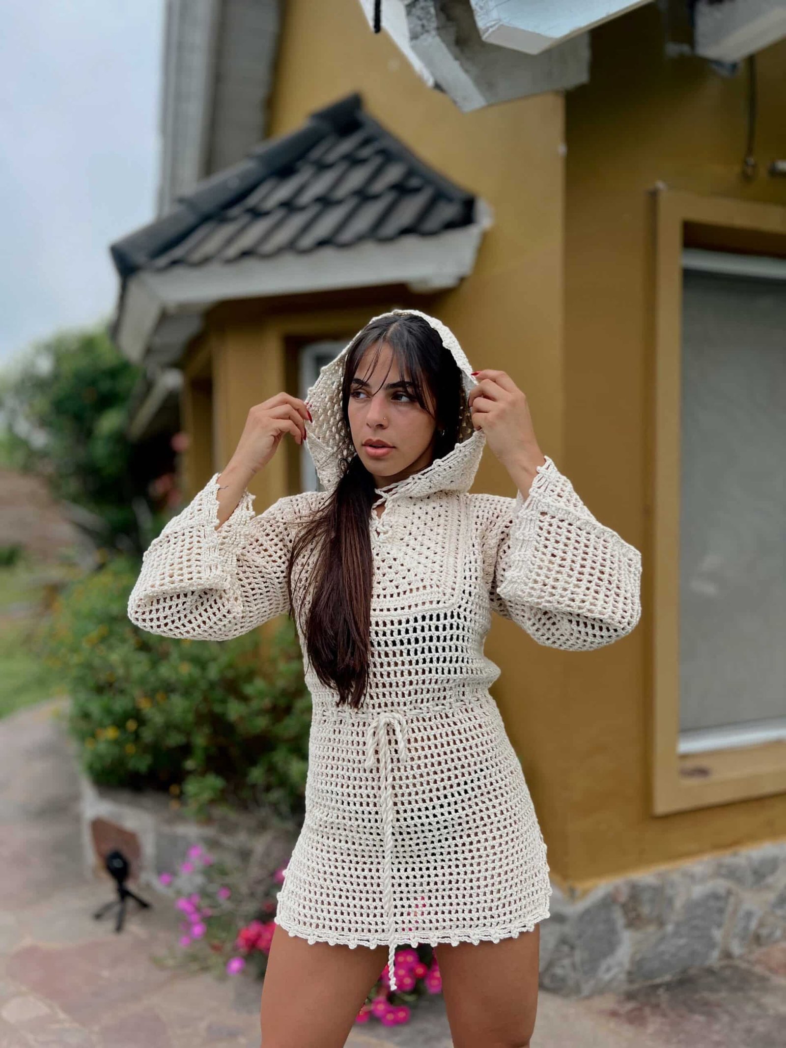 Túnica con capucha tejida al crochet