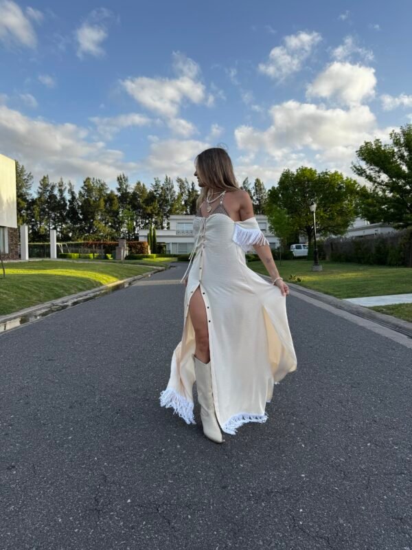 Vestido Libertad ✨ con flecos de seda, Ojalillos y cordon