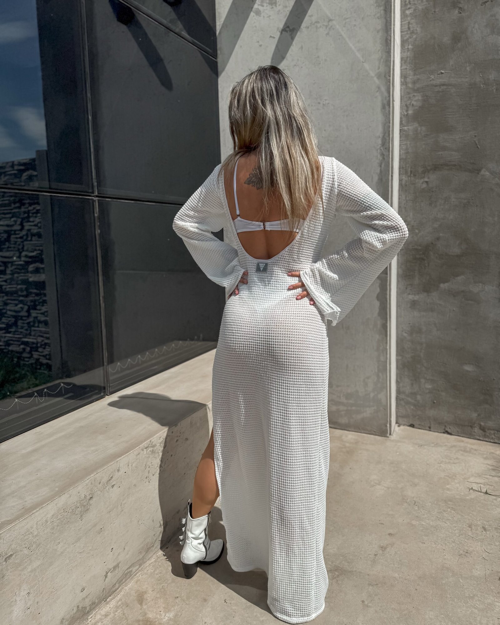 Vestido off white espalda descubierta