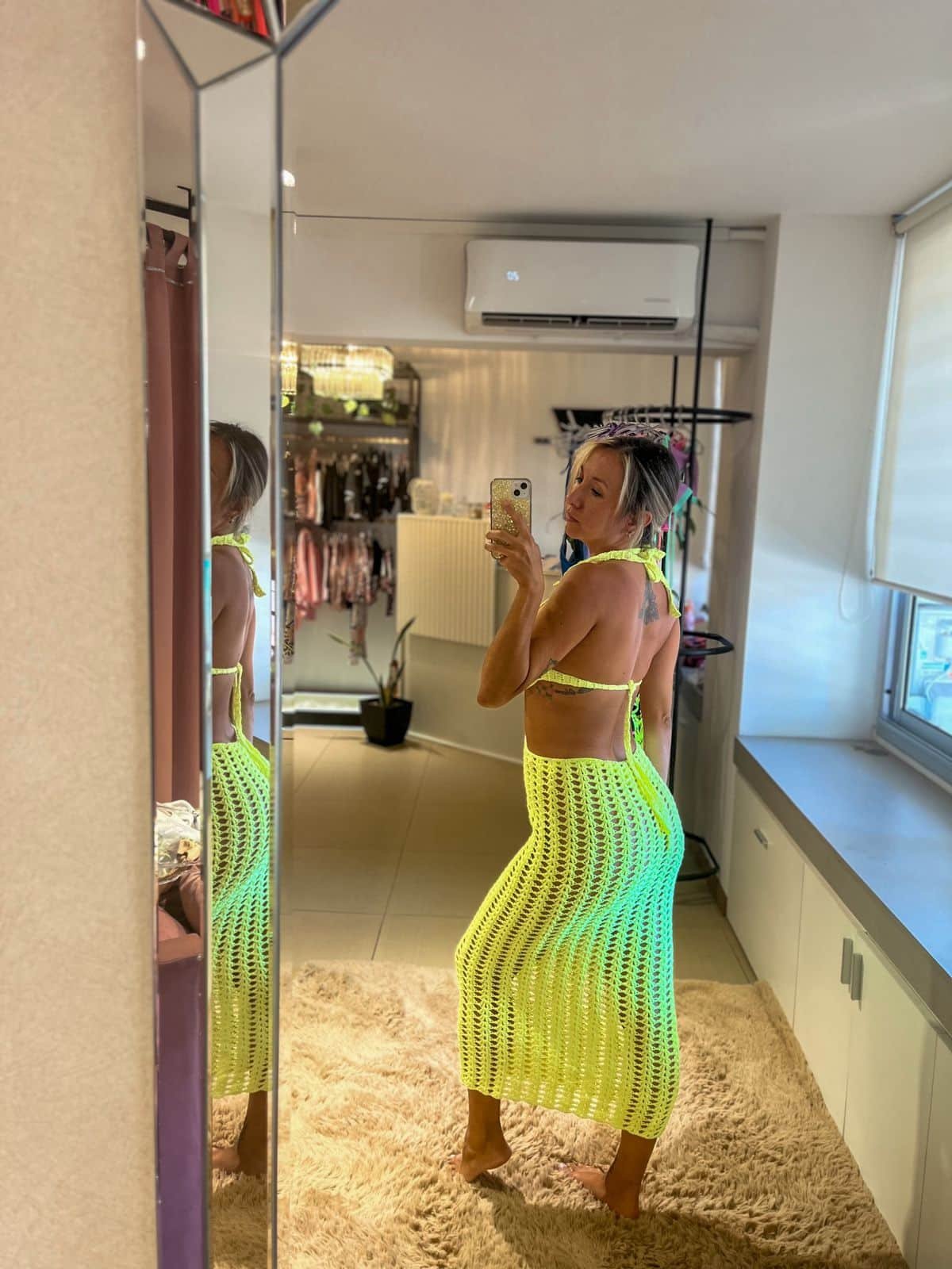 Vestido tejido midi. Talle unico. Se adapta entre un 90 de busto a un 100.