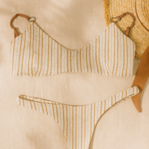 Bikini textil tipo crochet, top irregular con herraje Zamak + Less común