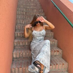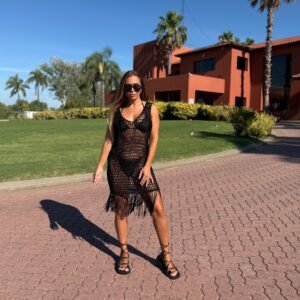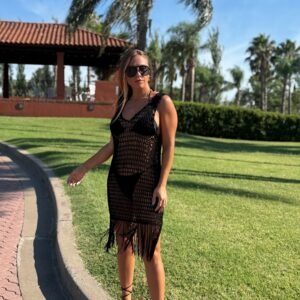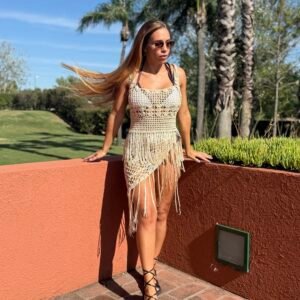 Set tejido macramé al crochet color champagne ( blusa + pareo )